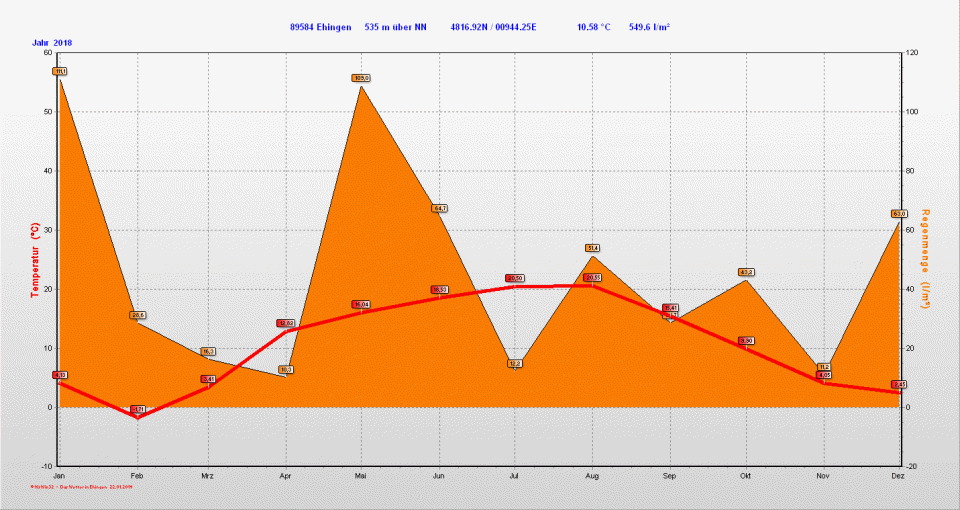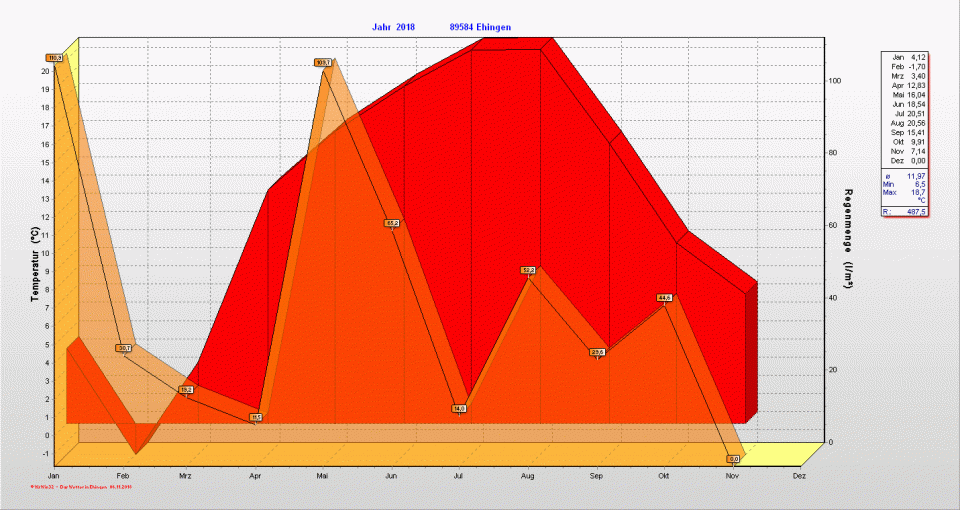 Hier die Wetterstatistik aus dem Jahr 2018 aus 89584 Ehingen.