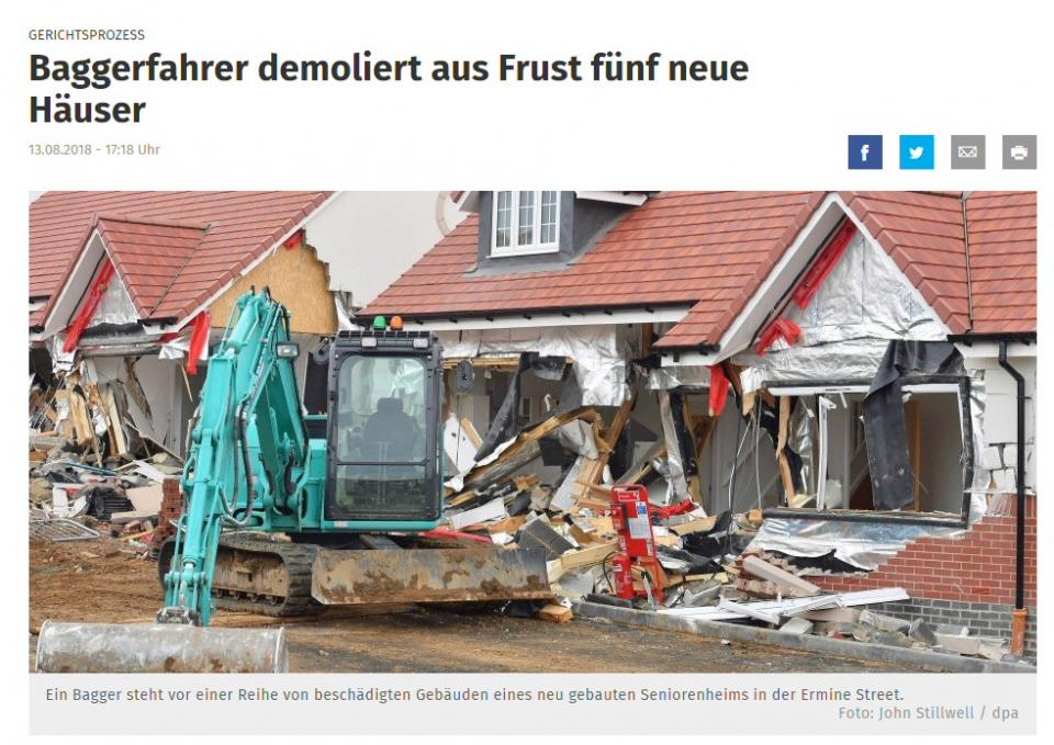 Ein wütender Baggerfahrer randaliert in einem Hotel, weil ein Bauarbeiter oder eine Firma ihm noch 600 Pfund schuldet. Der Mann hatte somit seinen Bagger direkt am Hoteleingang postiert und fing dann alles an zu zerstören, was ihm in den Weg kommt.