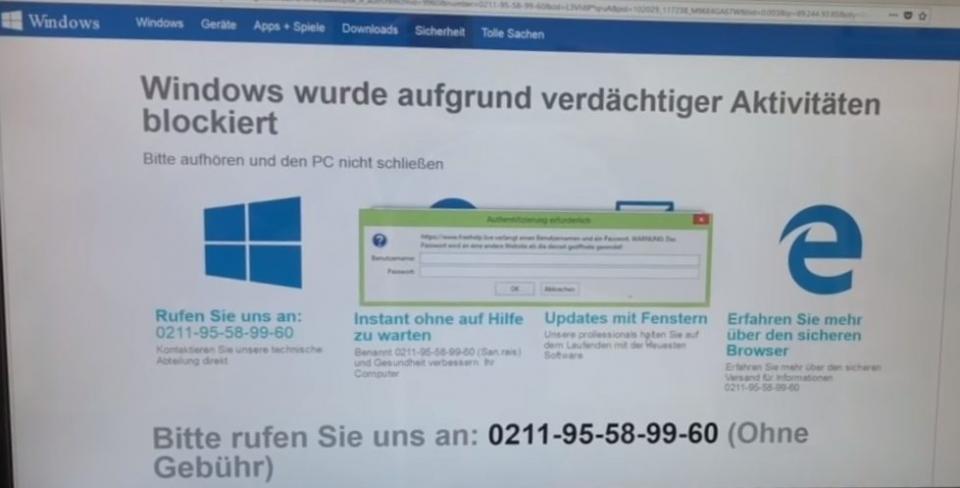Hier handelt es sich um keinen Support von Microsoft !!! Wer dort anruft und diese Daten bekommt, geht ein hohes Risiko ein, dass der PC verschlüsselt wird und nie wieder sich starten lässt. (Am Ende des Video gezeigt)