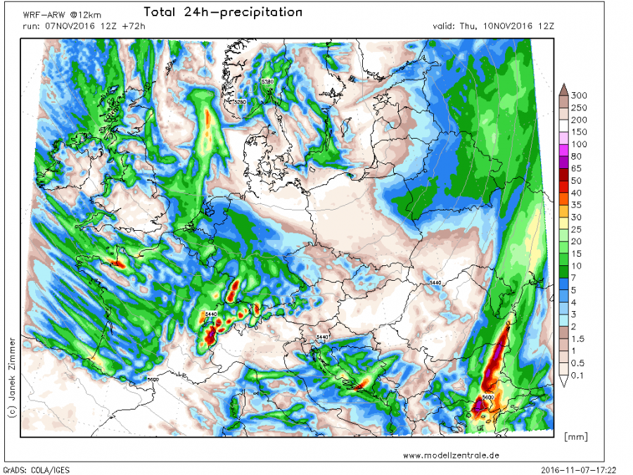 An Niederschlag mangelt es hier auch nicht, aber an Temperatur, 1k wärmer als geproggt.