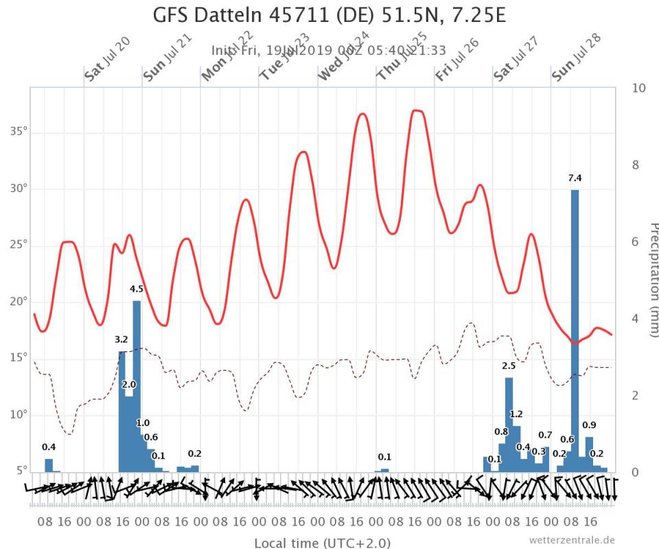Meine Starkregen-Ansage für diese Woche wird auch nichts mehr. Der Zug ist wohl abgefahren. Keine 5b-Lage und auch keine Aussicht mehr auf ergiebigen, flächigen Starkregen. Es wird eng für viele Biotope und auch für unzählige Bäume. Da kann man nur hoffen, dass die Selbstheilungskräfte der Natur noch vorhanden sind und es wieder richten werden.