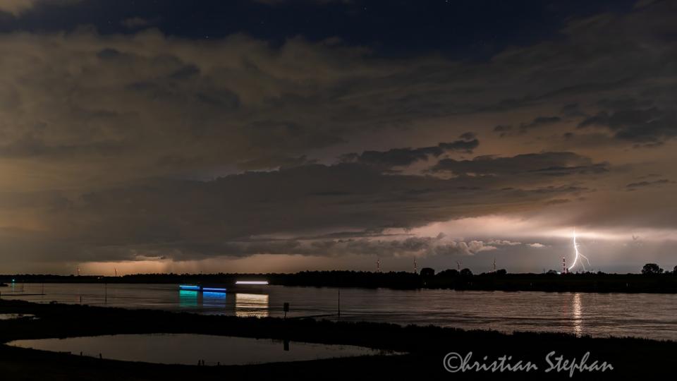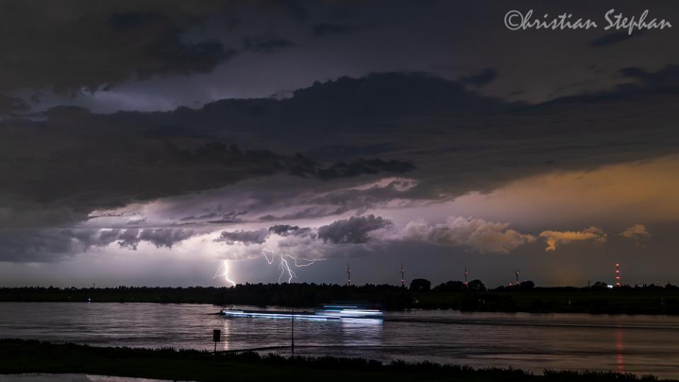 GOTT SEI DANK blickte ich im Bett liegend noch einmal aufs Radar. Daraufhin dauerte aus dem Bett hüpfen, anziehen, Gerödel raffen, ins Auto springen, erneut zum Rhein rasen und Kamera aufbauen insgesamt bestimmt nicht mehr als 15 Minuten