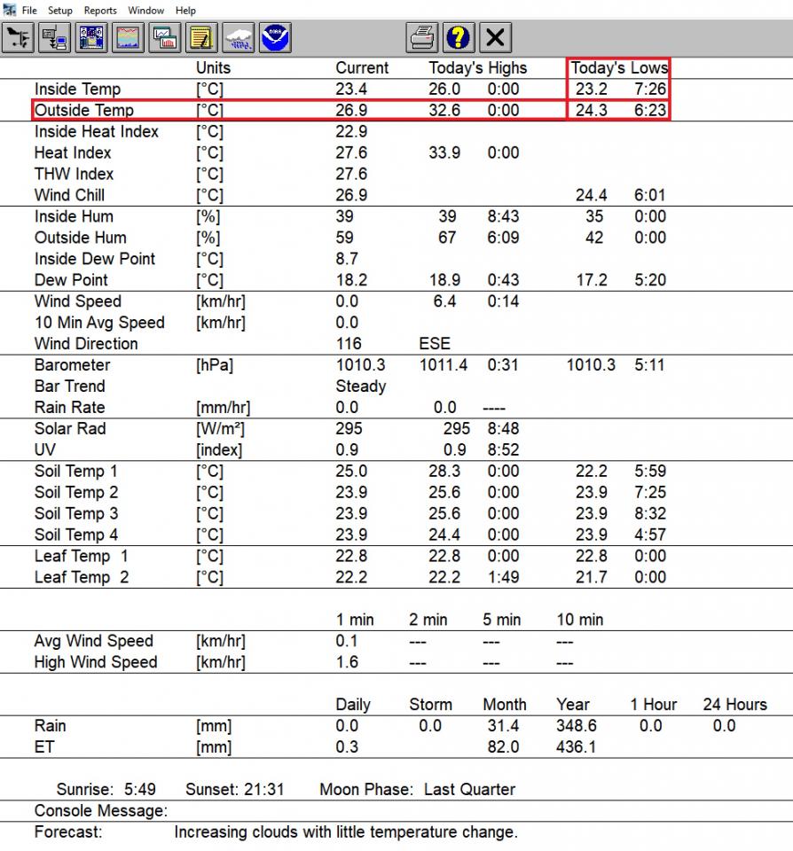 Heute morgen tatsächlich 16°C hier im Talgrund. Bin ich froh, daß es bei uns normalerweise ganz gut abkühlt. Beachtlich ist der Tagesgang, der aktuell bei locker 20 K liegt. Na, dann also Kampflüften bis 7.30 Uhr, und dann wird wieder das ganze Haus verbarrikadiert, damit die Hitze draußen bleibt.