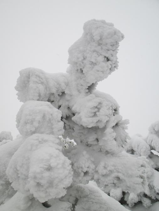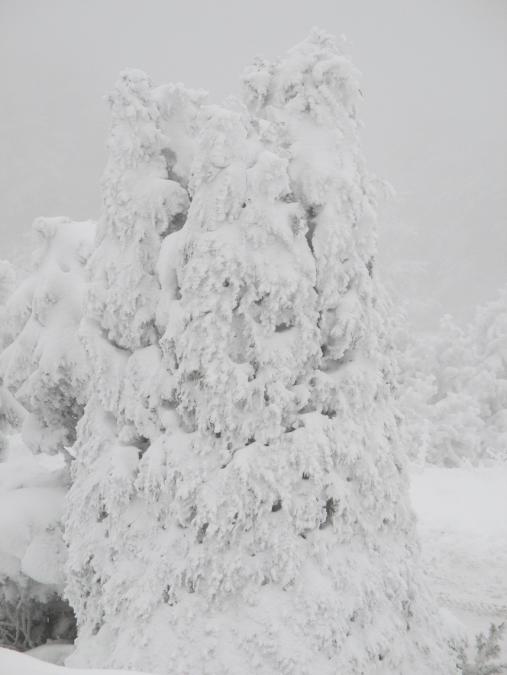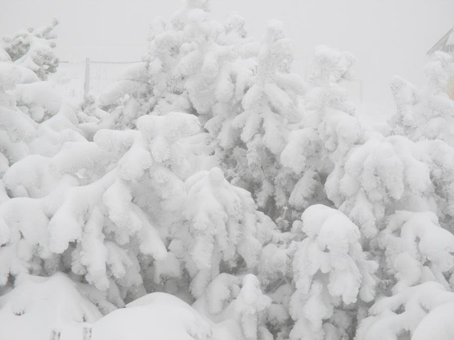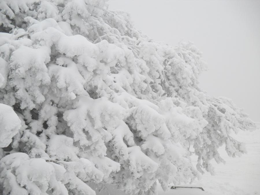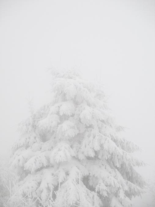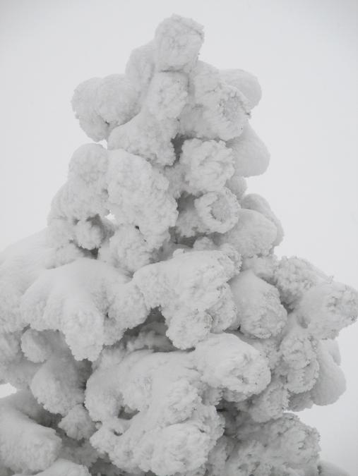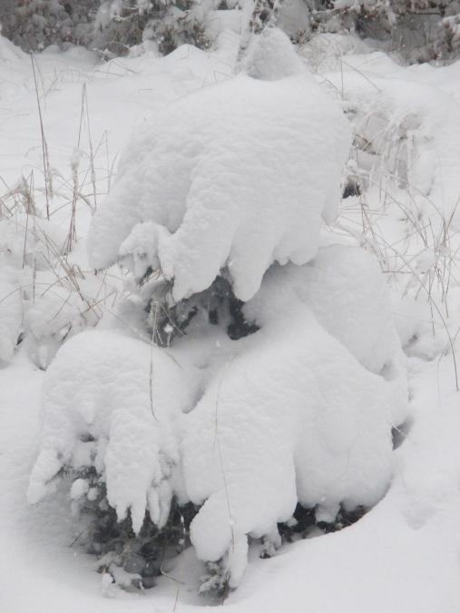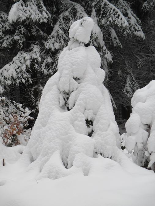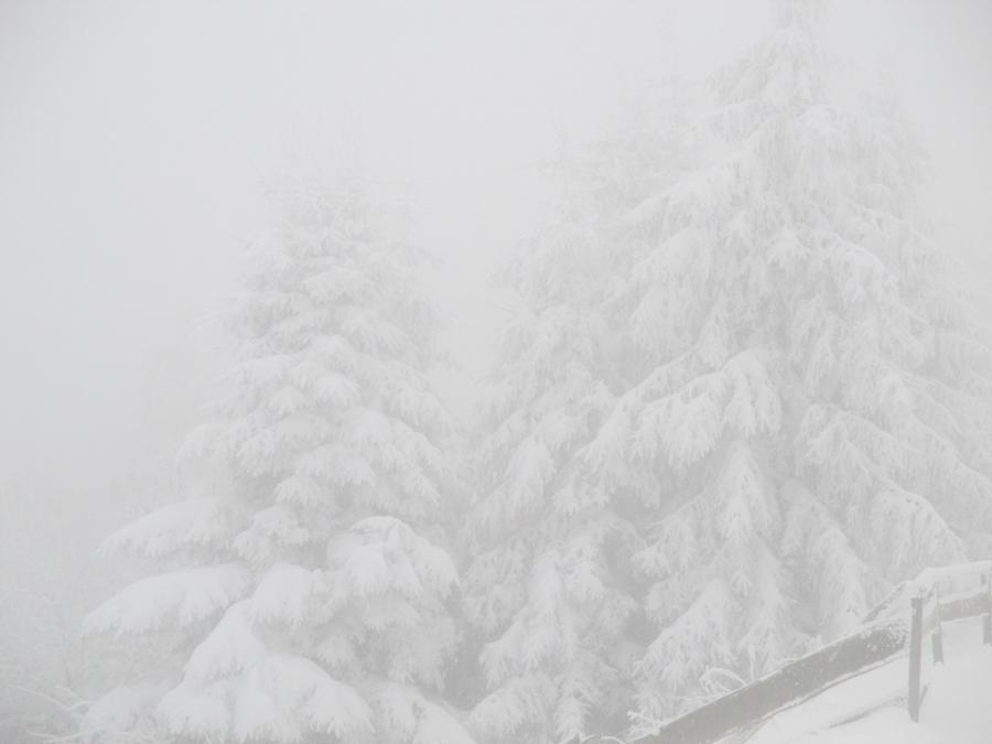 Auf der Bergwiese waren kleinere Fichten schon fast im Schnee verschwunden