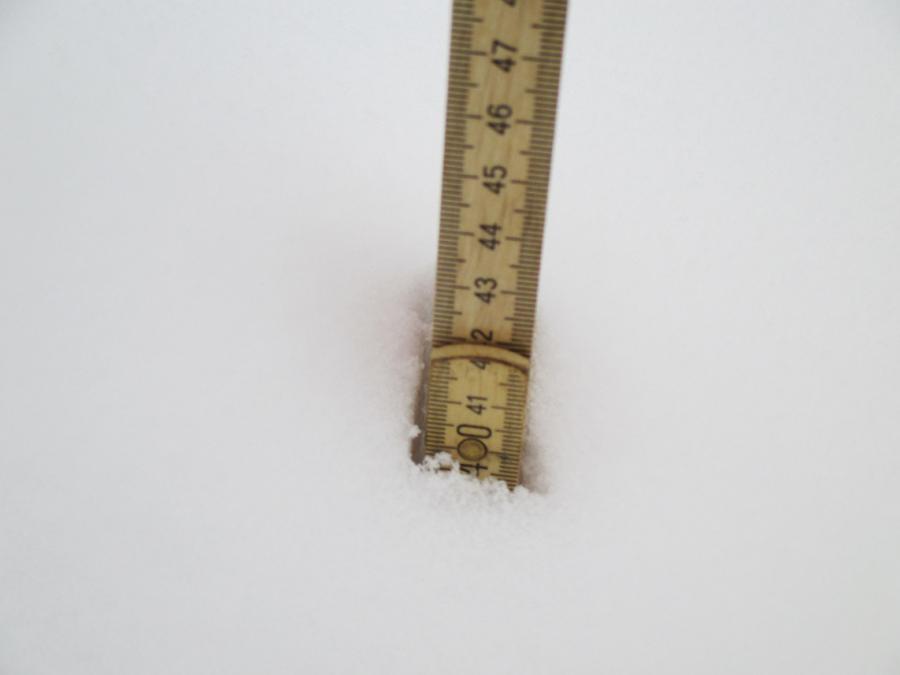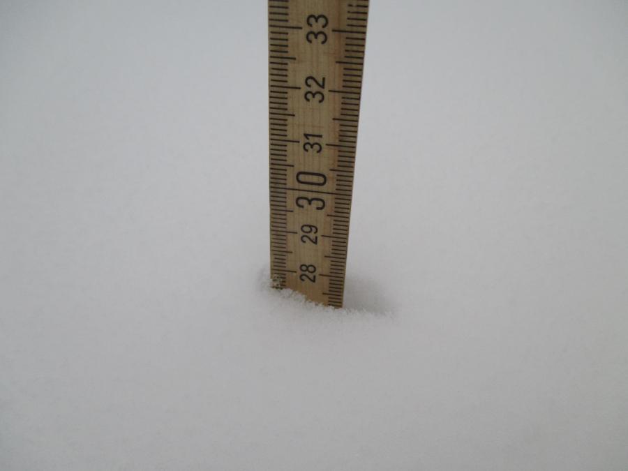 Die Schneehöhe ist weiter angewachsen heute Nacht, 600m NN