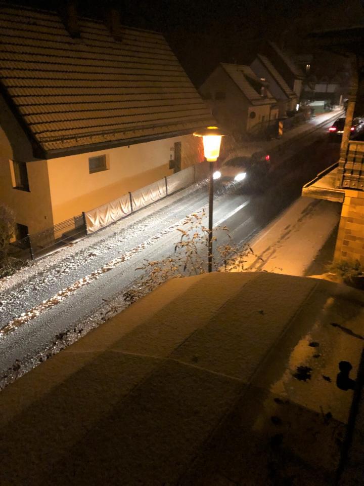 Gegen 13.30 Uhr prasselten erste "Schneeflocken" heftig auf die Dachfenster, bei 2,7°, es war eher so ein Graupelmix, aber ein paar Flocken ware da auch dabei.