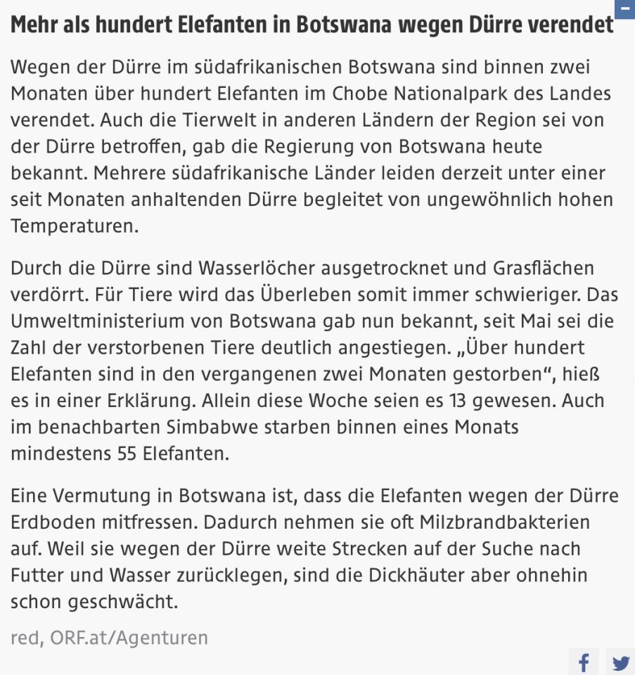 Auch in Südafrika ist es dieses Jahr zu Heiß und zu trocken. Elefanten und alle anderen Tiere leiden und Sterben.