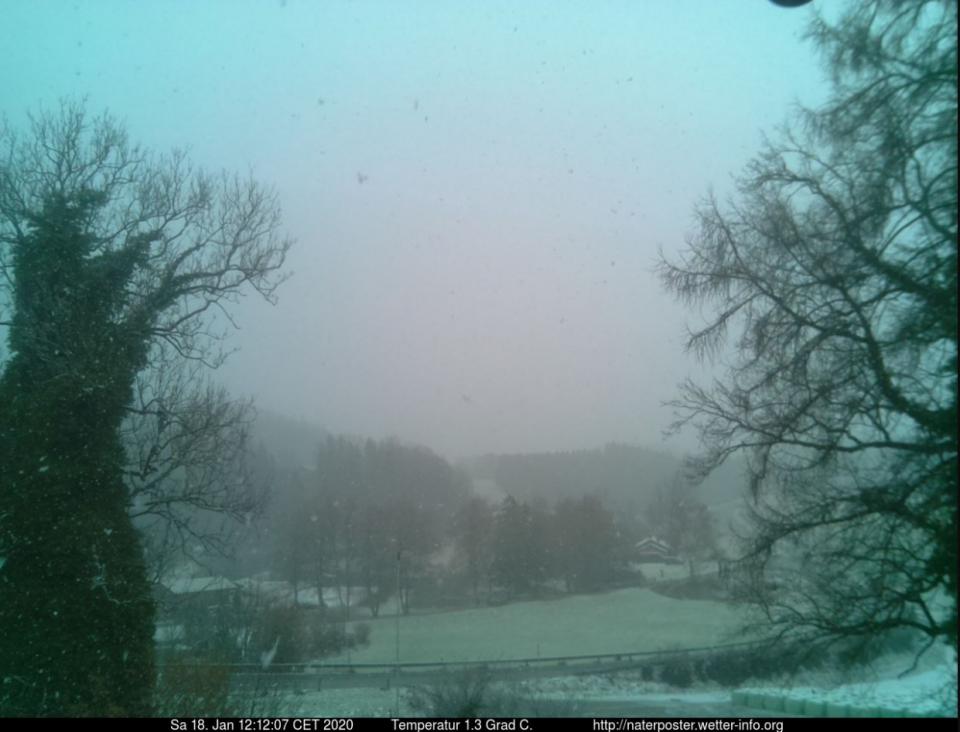 zeitweise leichte Schauer, vereinzelt mit minimalem Schneeanteil. Lt. webcams angeweißelt oberhalb 600-700m.Ich habe zum 2. mal seit 6.12. die Niederschlagsheizung an.