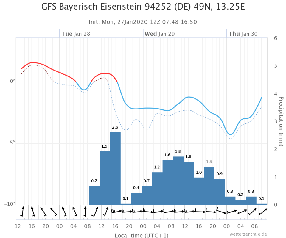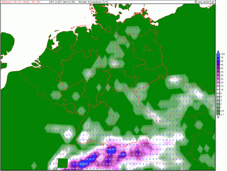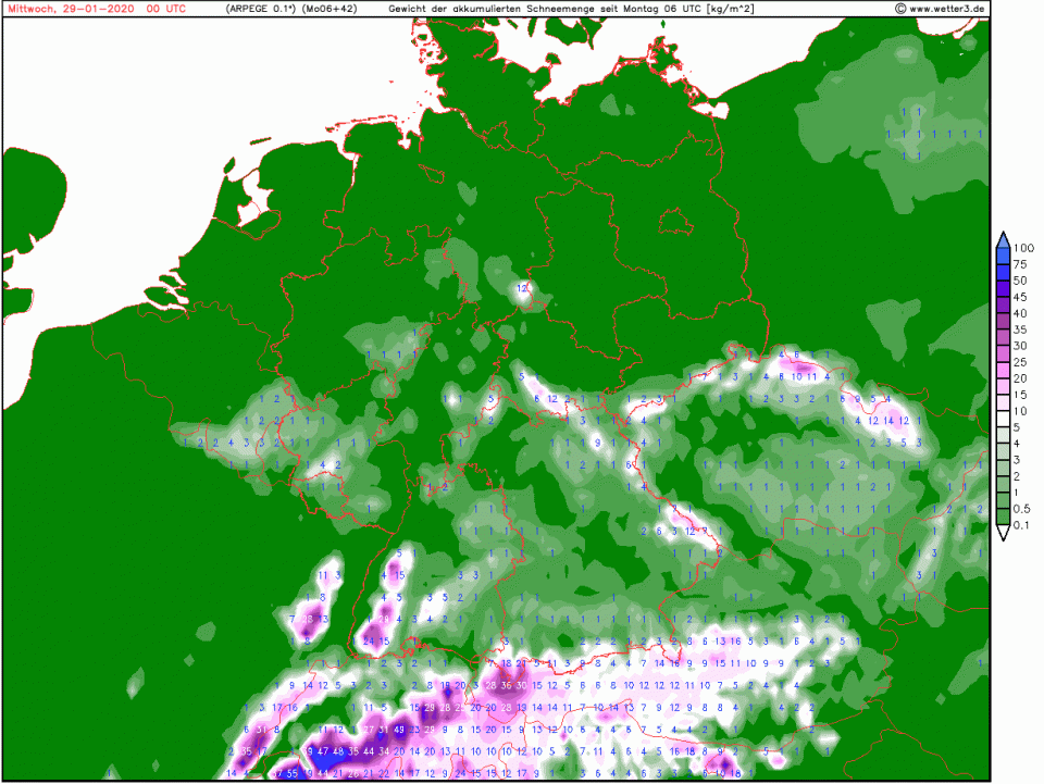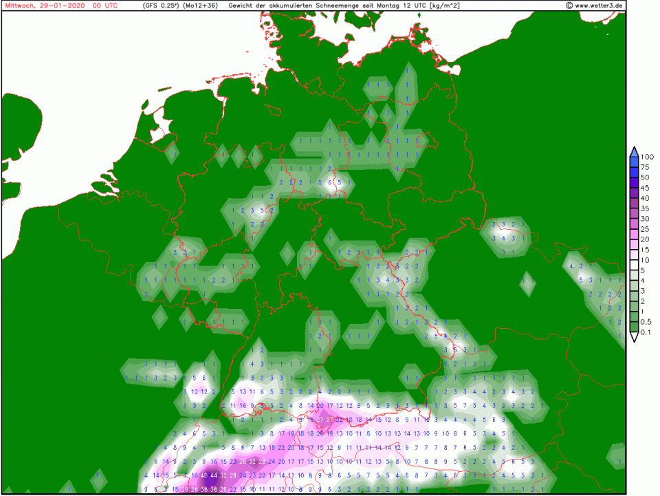Schnee fallen tut teils auch bis ins Tiefland. Okay, ich weiß nicht, inwiefern die Modelle zwischen Schnee und Graupel unterscheiden: