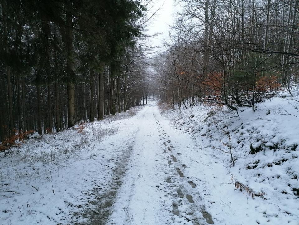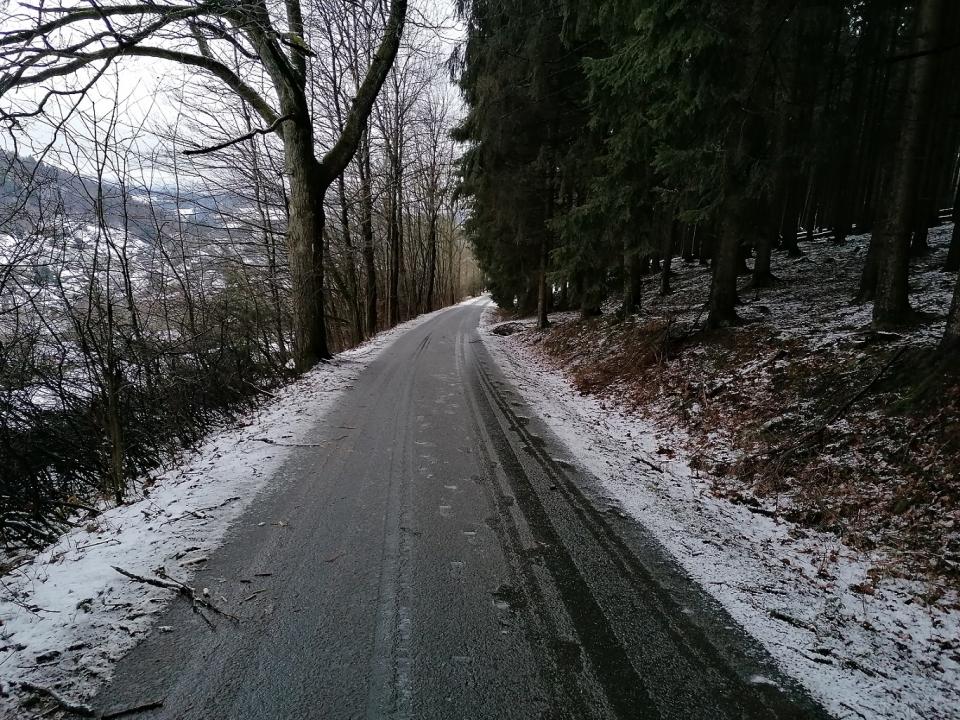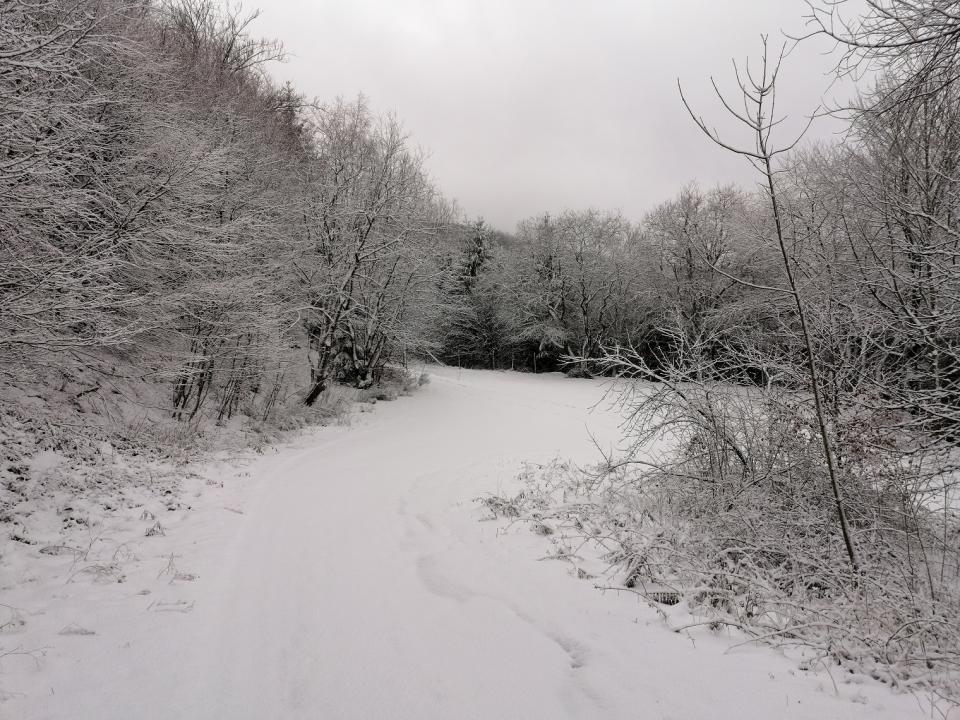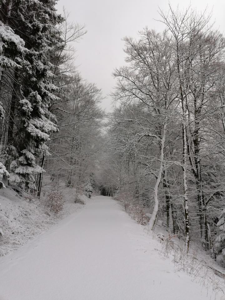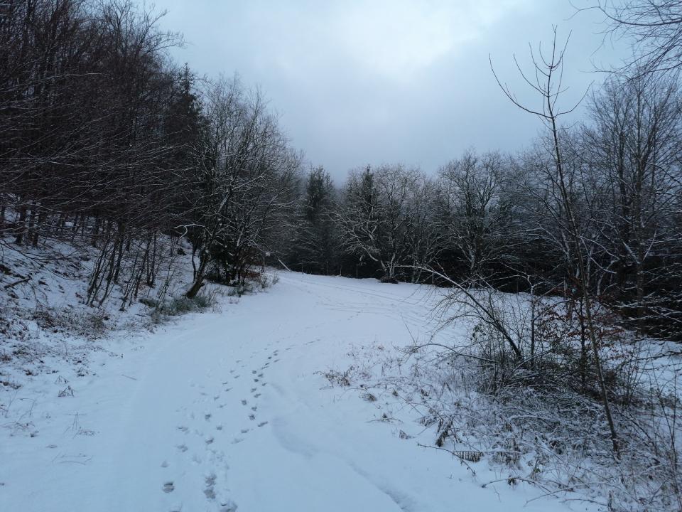 bin malwieder gewandert, und zwar genau in dem Moment, als es aufhörte zu schneien. Das zwar von 520m aufwärts am Rande der Hunau. Aufwärts war wichtig, denn hinter dem Tief wurde es wärmer. War zwar ne Kaltfront, aber ne maskierte. Sie war nicht so kalt, wie die zuvor eingeflossene, sie setzte sich aber aufgrund der Durchmischung durch: