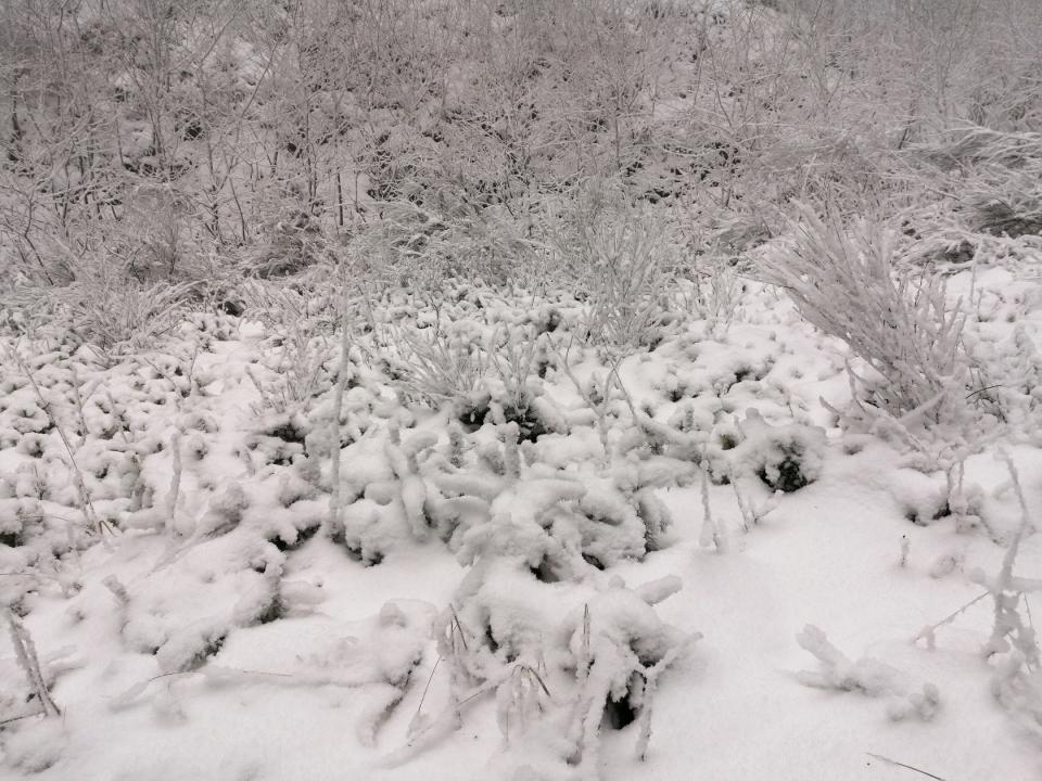 Von nun an ging's abwärts, wieder in den Bereich, wo der Schnee an allem festklebte: