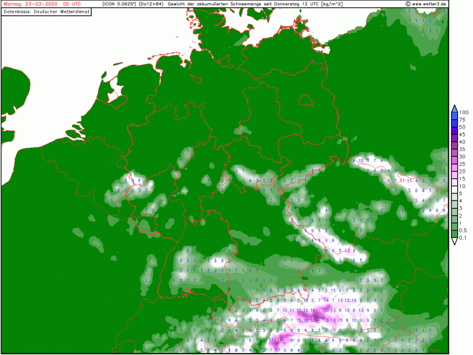 Es folgt trockene Luft, die mit viel Sonnenschein noch knapp unter durchschnittliche Höchstwerte für Ende März (die für ne Minute erreicht werden) von um die 10°C bewirken. Heißt: Am Rhein drüber, verbreitet knapp darunter, als kurzzeitiger Höchstwert. In mittleren Lagen der Mittelgebirge um die 5°C, Hochlagen um die 0°C, in Ostdeutschland kälter als in Westdeutschland. Und nachts gibt's nen deutlichen Temperaturrückgang auf flächendeckenden Frost, regional mäßig, in Hochtälern der Mittelgebirge vielleicht auch zweistellig. Mal schauen, ob es hier und da kälter als im Winter wird: