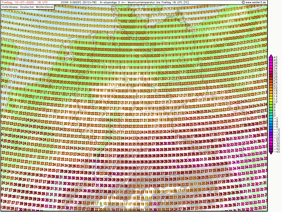 aktuell gibt es große Temperaturunterschiede in Europa von vielfach 20k und bis zu 30k. In Connaught Airport auf 209m üNN in Irland konnte man Glühwein trinken bei einer Höchsttemperatur von 13°C, während man in Jerez de la Frontera (28m) in Süd-Spanien eher Spiegeleier auf Autos braten konnte, bei 43°C im Schatten.