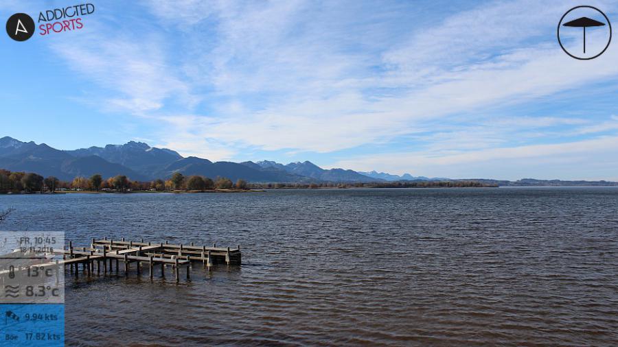 Die Temps sind nun bei +14,5Grad, auf westlicher Seite leichte Cirrenteppiche und östliche Seite frei geputzt blauer Himmel.. Bis dato keine typischen Föhnwolken über der Region.