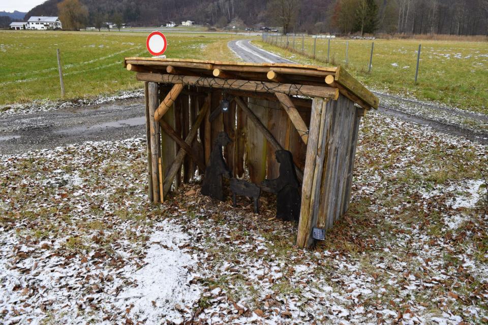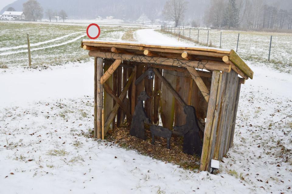 Um das Ganze etwas weihnachtlich zu gestalten, wird an dieser neuen Krippe gemessen (das Bild stammt vom 3.12., aktuell liegt wie man sich denken kann natürlich kein Schnee..