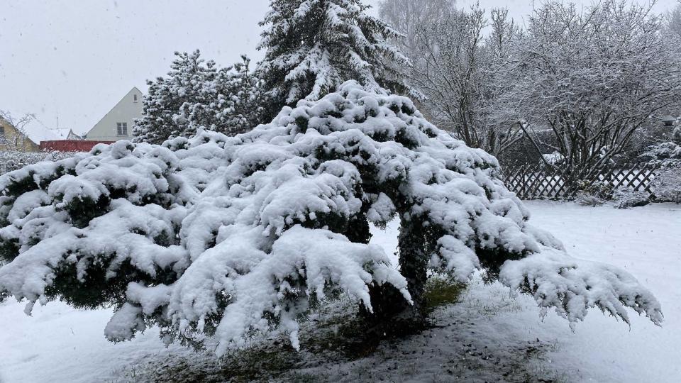 Takt. +0,5°/ leichter Schneefall mit großen Flocken.
