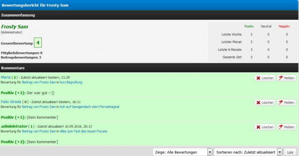 seiner Bewertungen zu sehen (wie unter meinem Avatar derzeit die "Bewertung:4"):