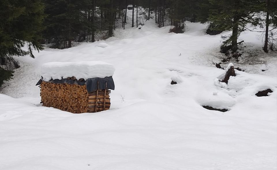 takt 5,6°C, weiter Regen. 13mm sind bisher gefallen. SD nur noch im Wald vorhanden, aber sehr löchrig.