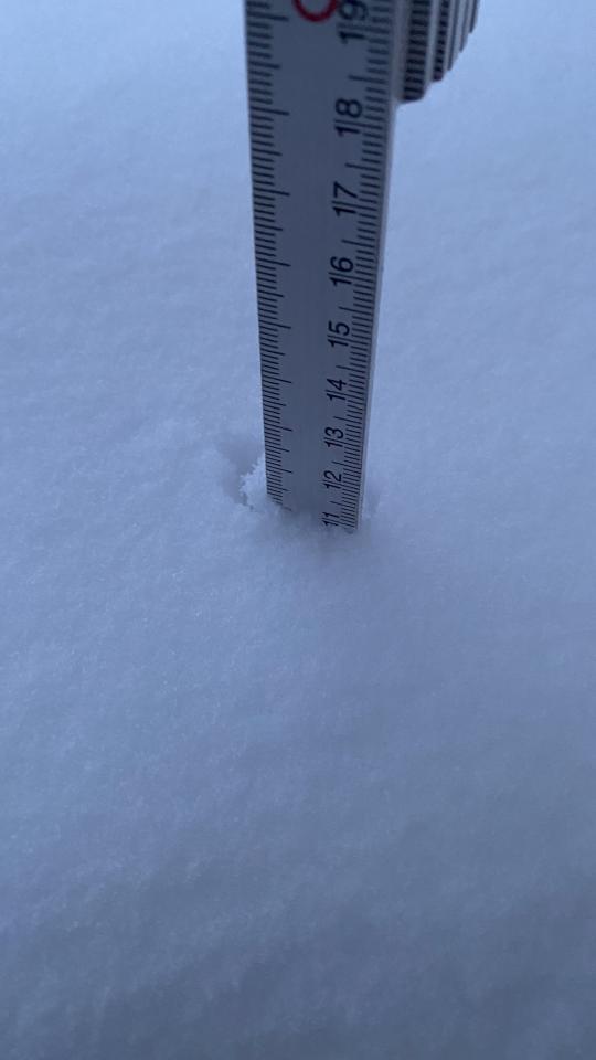 das Schneehöhen-Erhaltungsprogramm durch leichte Schneefälle geht weiter. Jetzt wieder 13cm.
