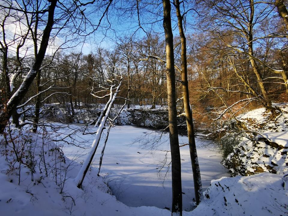 Ein alter Steinbruch auf Mülheimer Stadtgebiet, war komplett zugefroren und wurde schon von einigen Personen betreten, teils mit Schlittschuhen. (No risk, no fun noch sollte man vorsichtig sein).