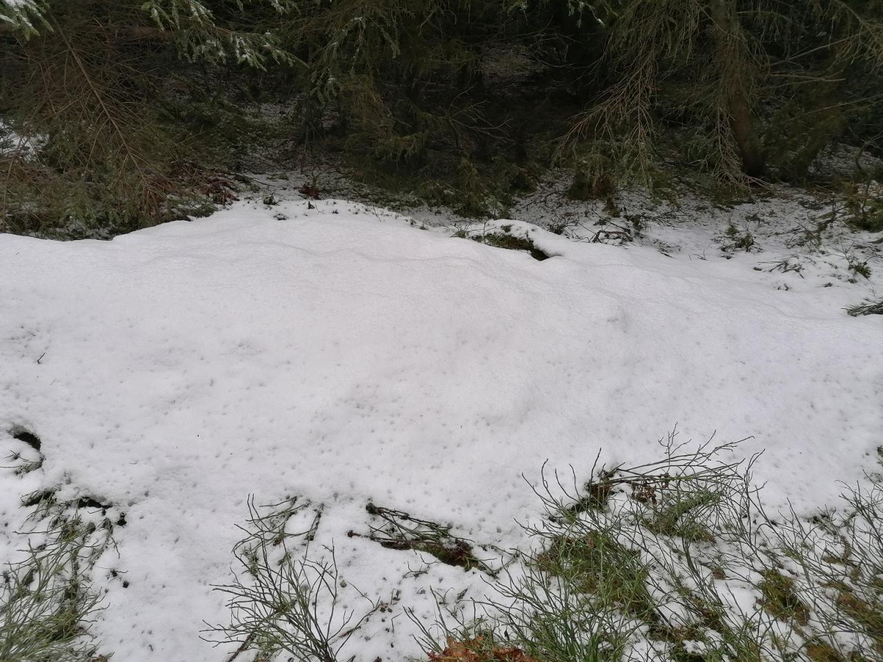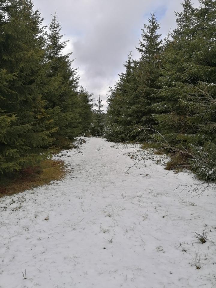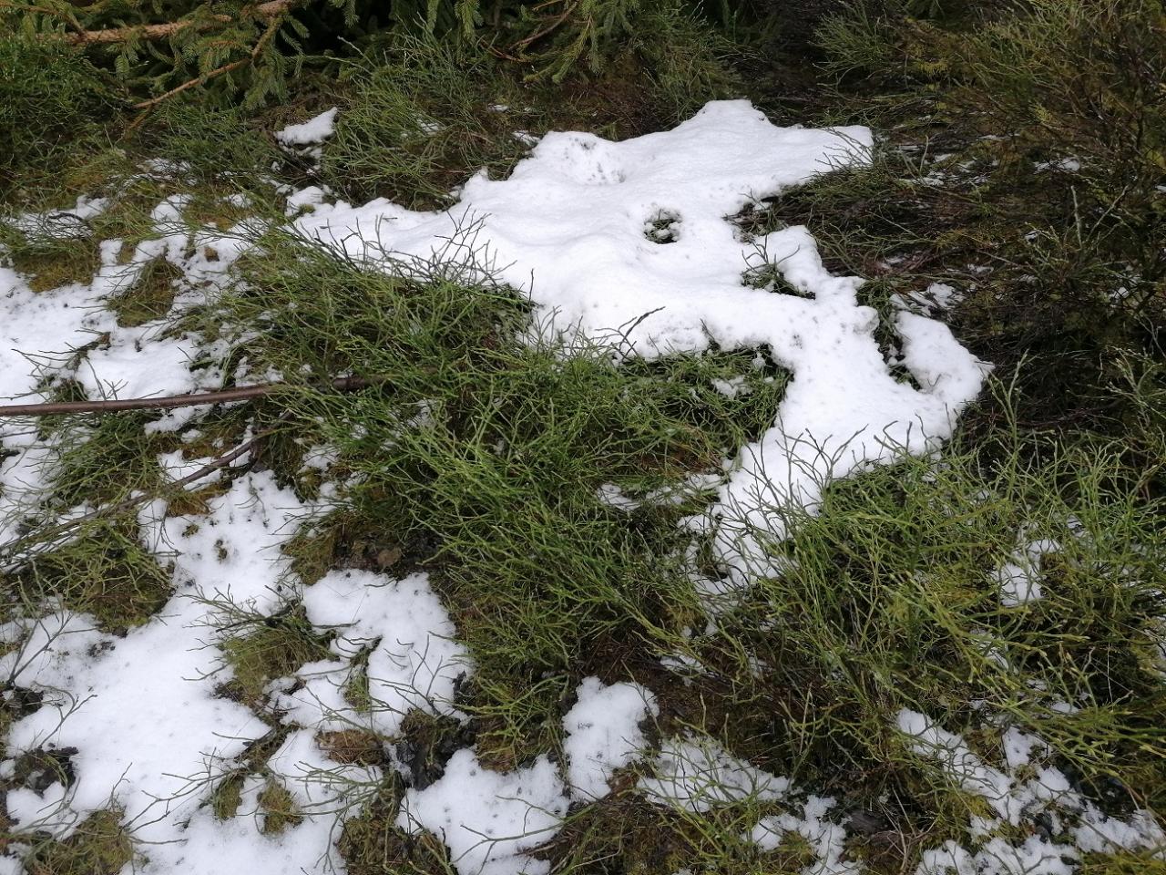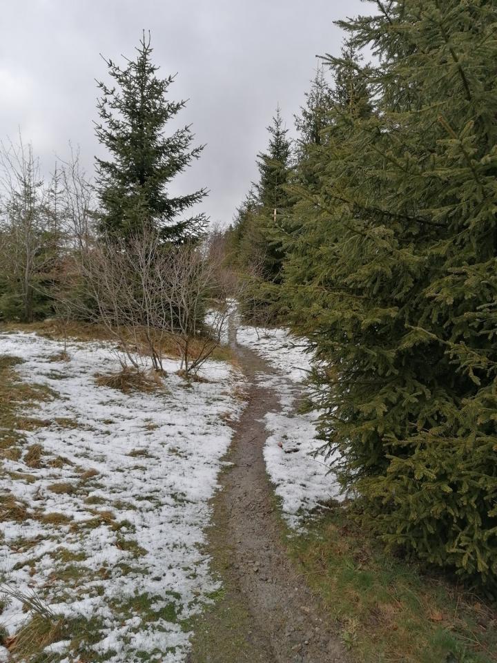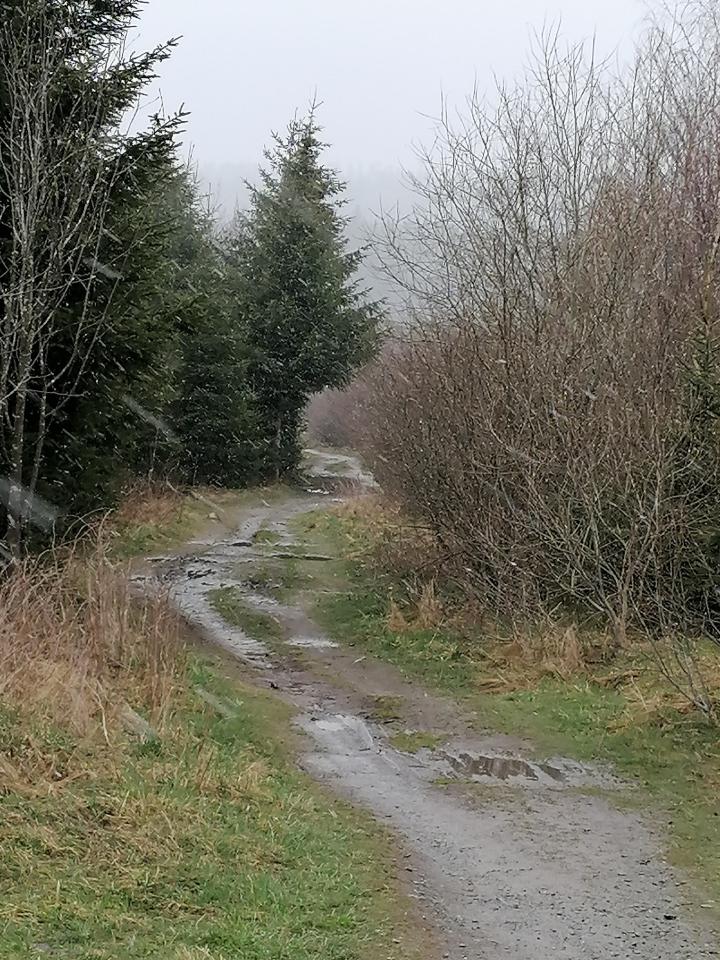 Auf dem Rückweg bergab lag aber kaum noch Schnee. Dafür geriet ich aber noch in einen Schneeschauer.