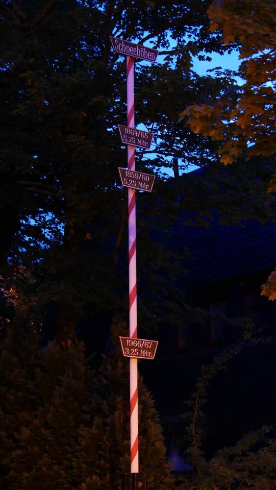 da ich die letzte Woche in Oberhof (ca. 800m üNN) weilte, hier mal der Stab der Rekord Schneehöhen.