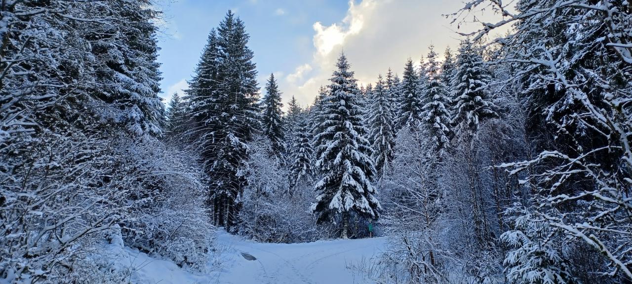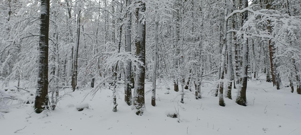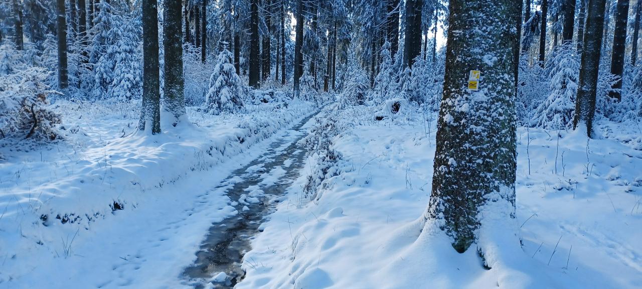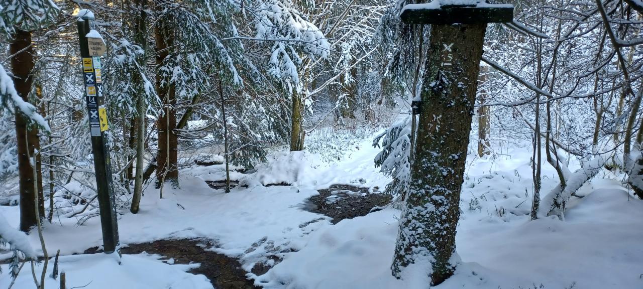 Aber oberhalb ca 700m hielt sich der Neuschnee von gestern auch auf Laubbäumen. Die werfen ihn am schnellsten ab:
