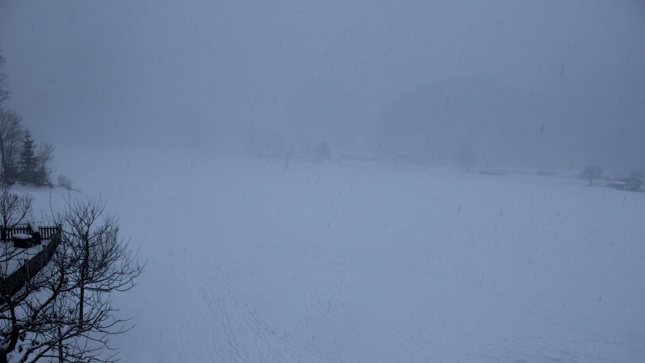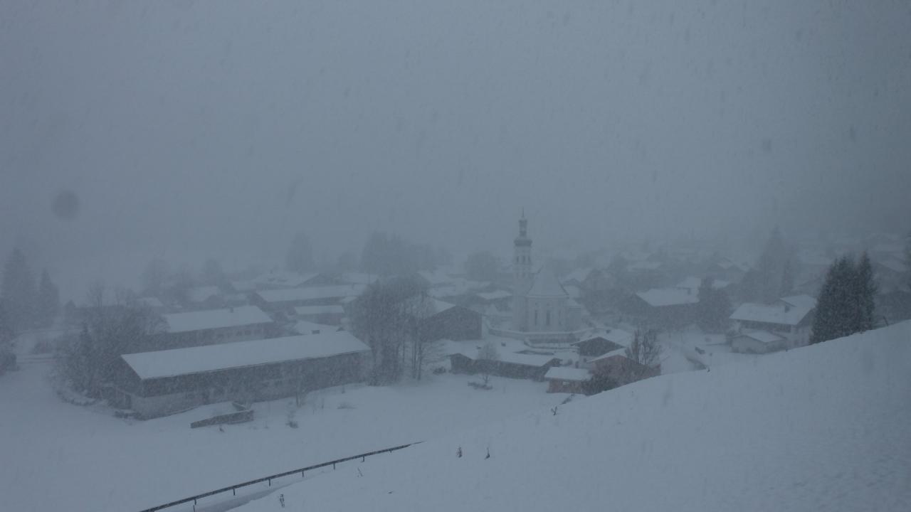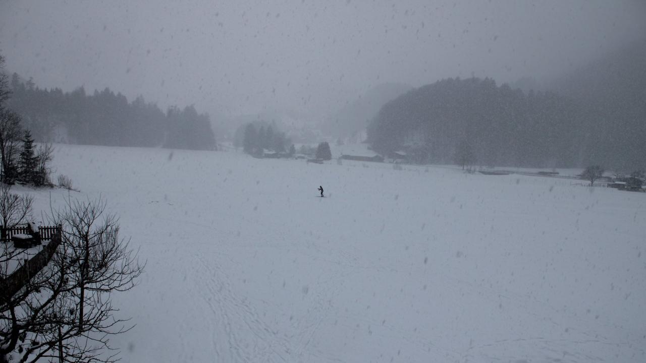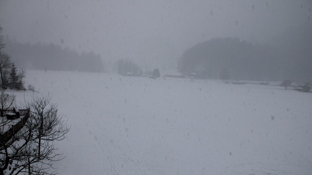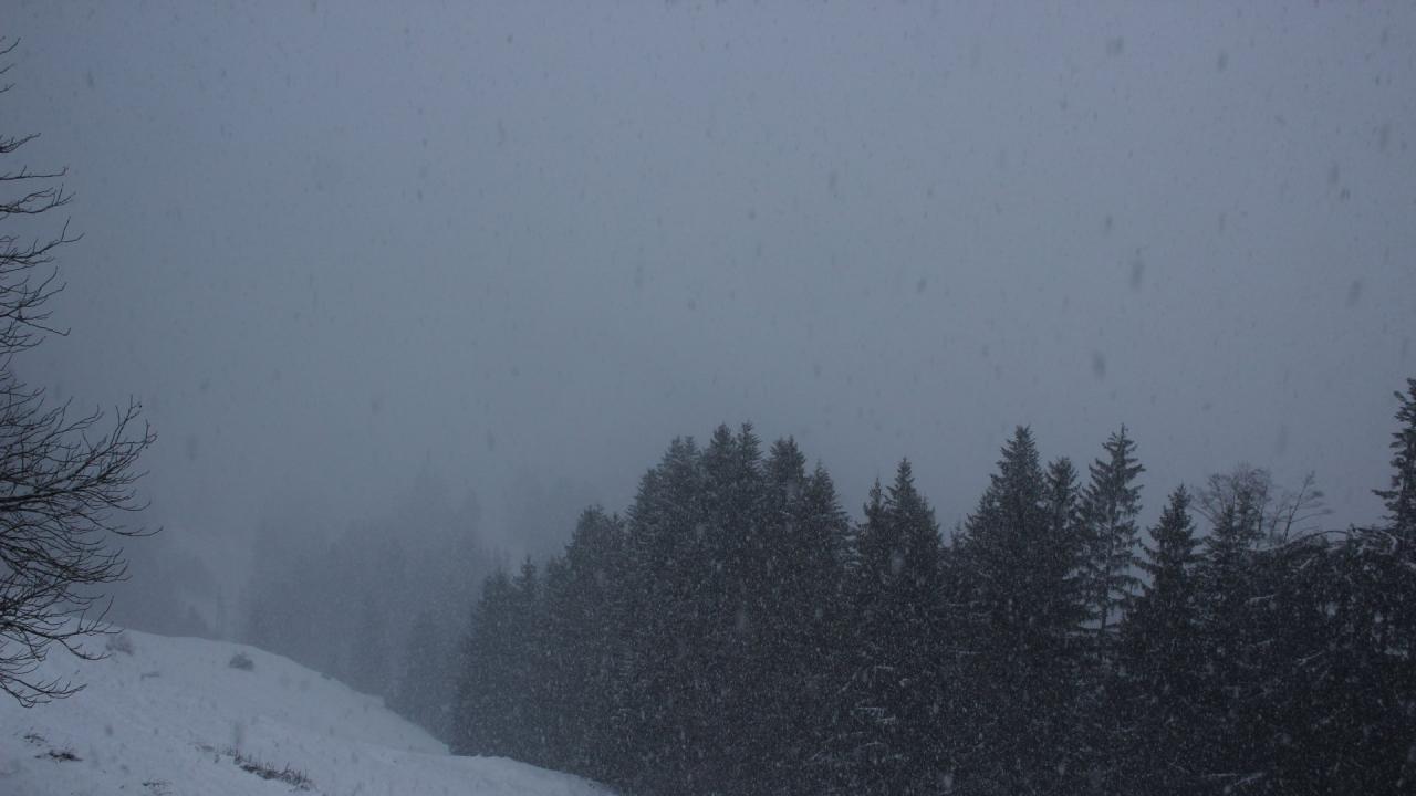 Kachelt es teils starke Schneeschauer von Nordost ins Tal. Zeitweilig war / ist echt wenig Sicht. So kann der Wintertag beginnen ...