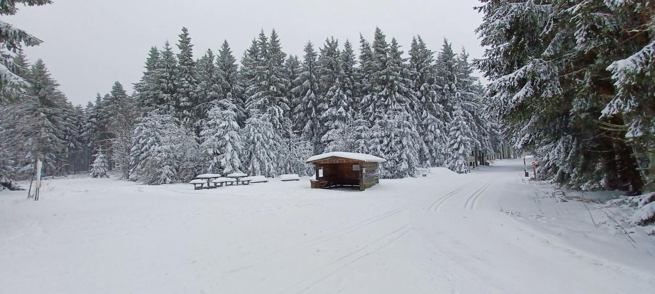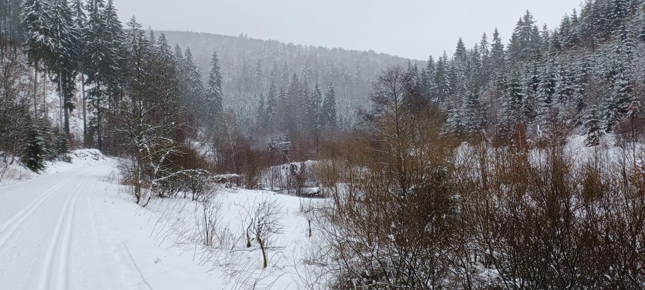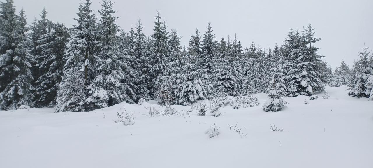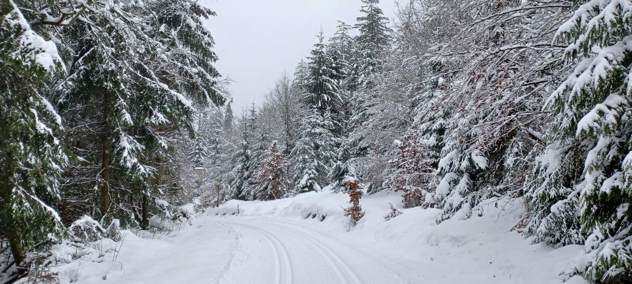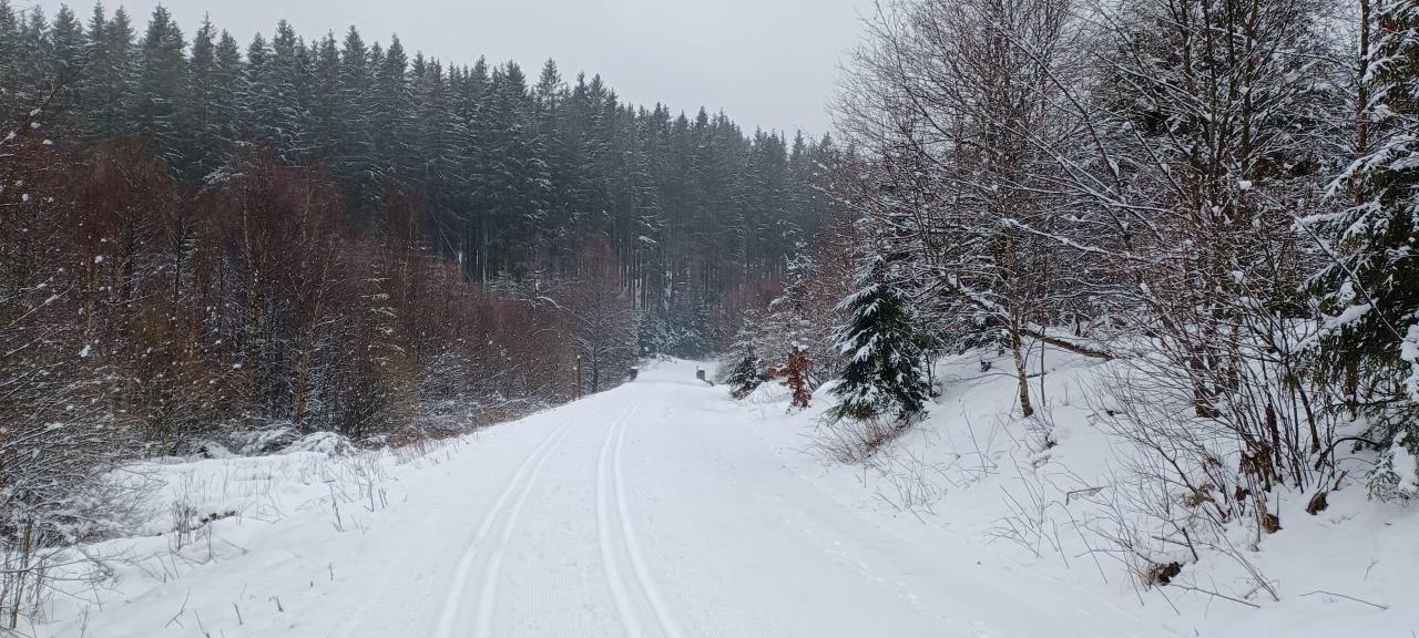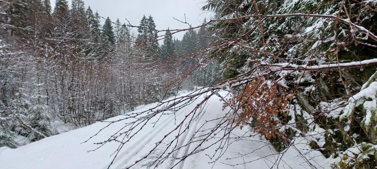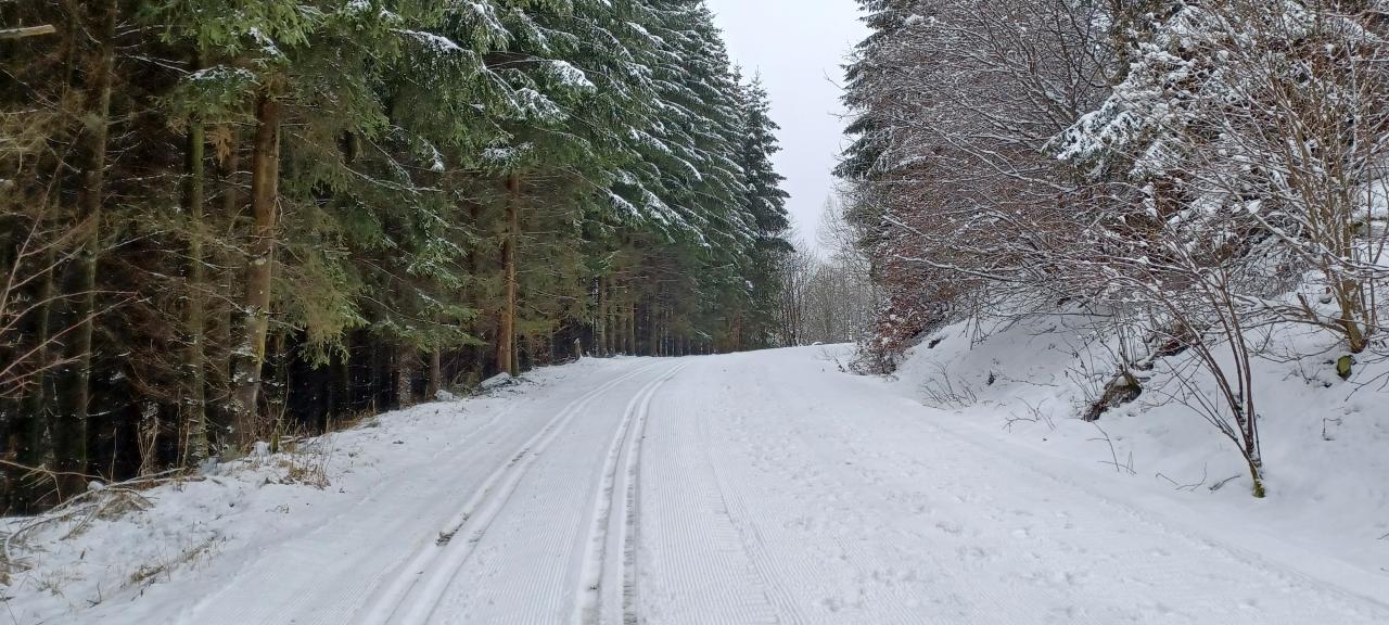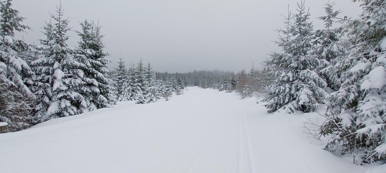 Und die letzte halbe Stunde wurde es sogar ziemlich vollwinterlich, denn zu den ca 30-40cm auf 770-800m gesellte sich noch recht kräftiger Schneefall... naja, was man so "fall" nennt. Bei dem kräftigen Wind fiel der nicht wirklich.