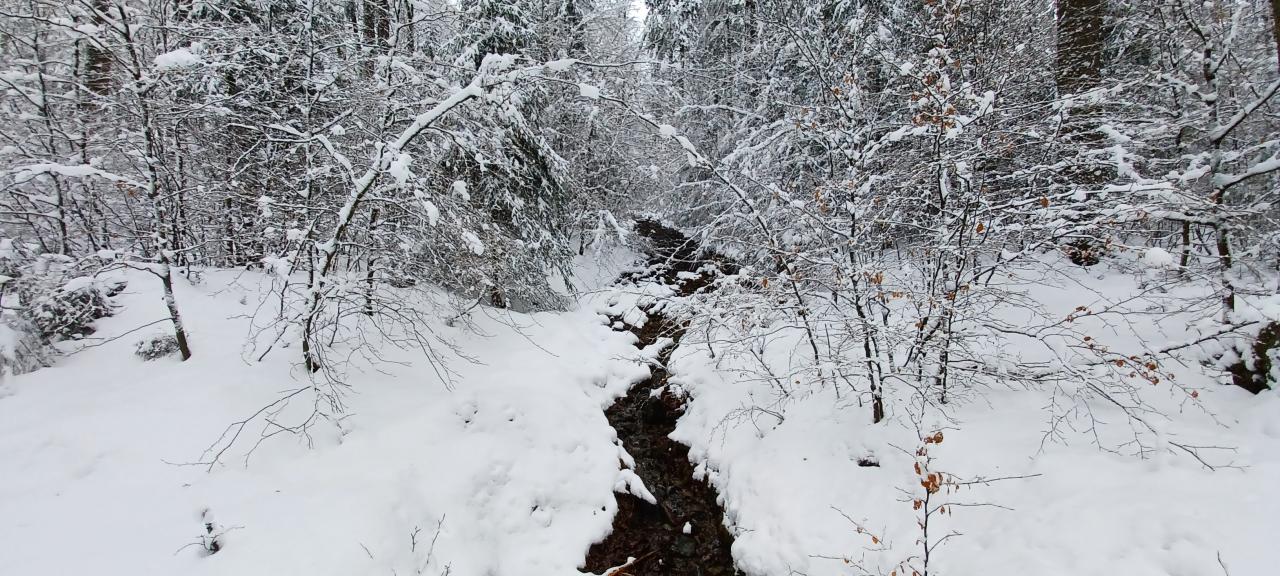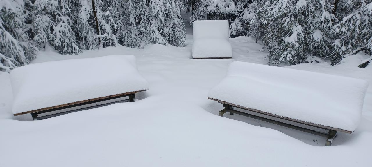 Man sieht es nicht auf den letzten 5 Bildern, aber es war schon +0°C auch auf 800m. Heute Abend gab es dort starken Schneeregen bei gut 1°C und jetzt wo der Niederschlag weg ist, taut's da bei 2-3°C. Ob das wohl der Winter-Höhepunkt war? Naja, immerhin ist nichts in Sicht, was der Schneedecke oberhalb 750m existenziell gefährlich werden könnte. Dafür liegt zu viel und richtig richtig starkes Tauwetter ist nicht in Sicht.