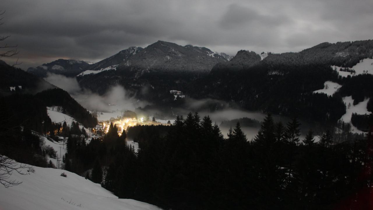 Gegen 8Uhr Übergang in anhaltend leichten Schneefall und seither punktgenau 0Grad. Hier unten kaum Bildung einer wirklichen Neuschneedecke (1cm Matsch), Selbige sichtbar ab gut 50m höher. Meine Höhenmelder um 850m vermelden an die 5cm neu, 1000m bissl mehr ...