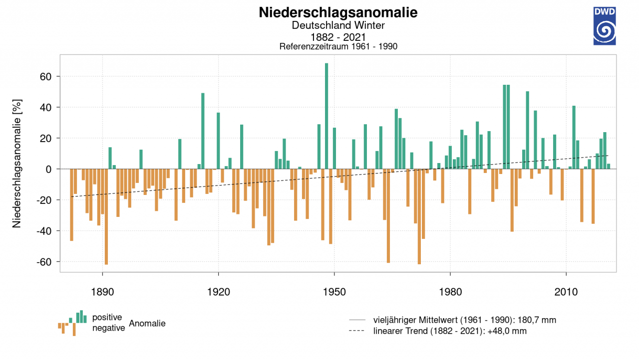 Mal gucken, ob jetzt auch ein trockener Frühling/Sommer folgt. Dann werden wir noch weitere Nachrichten von dort hören. Bei uns verschiebt es sich langsam in diese Richtung. Im Winter nehmen die Niederschläge zu: