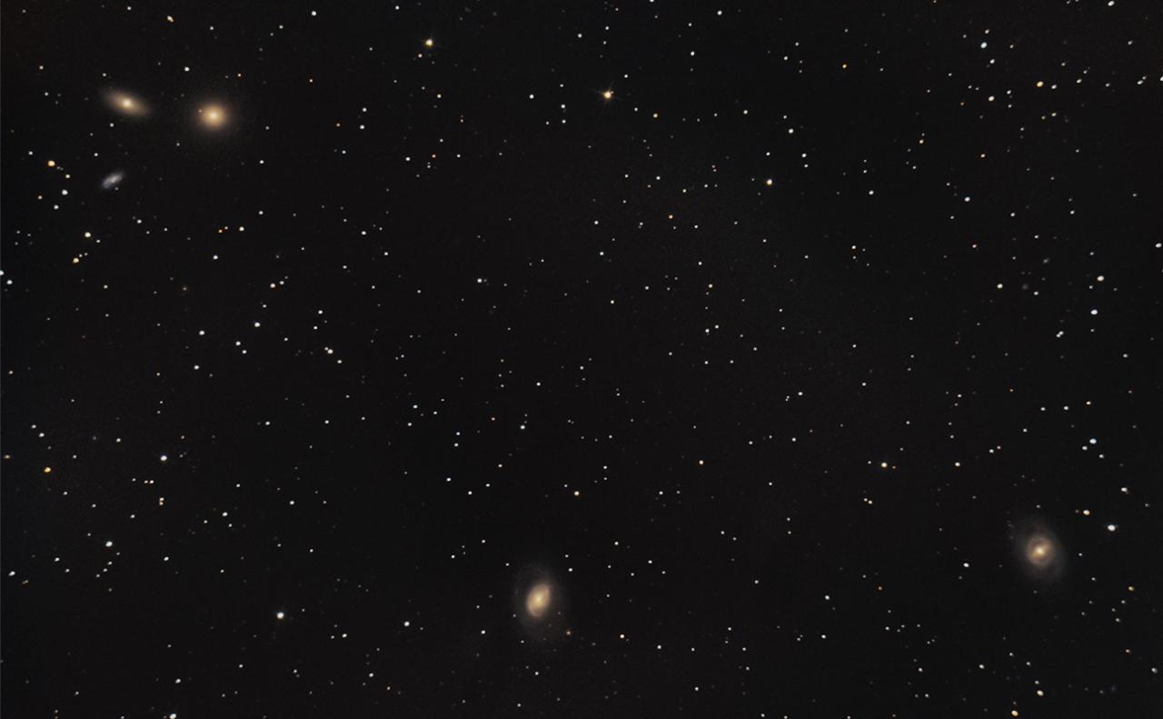 Auch im Löwen noch eine weitere Galaxien-Ansammlung mit fünf schönen Galaxien abgebildet.