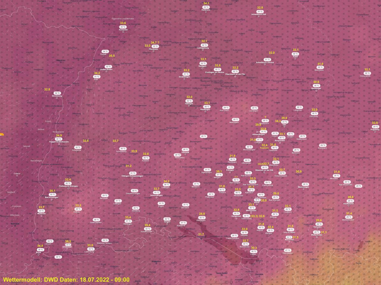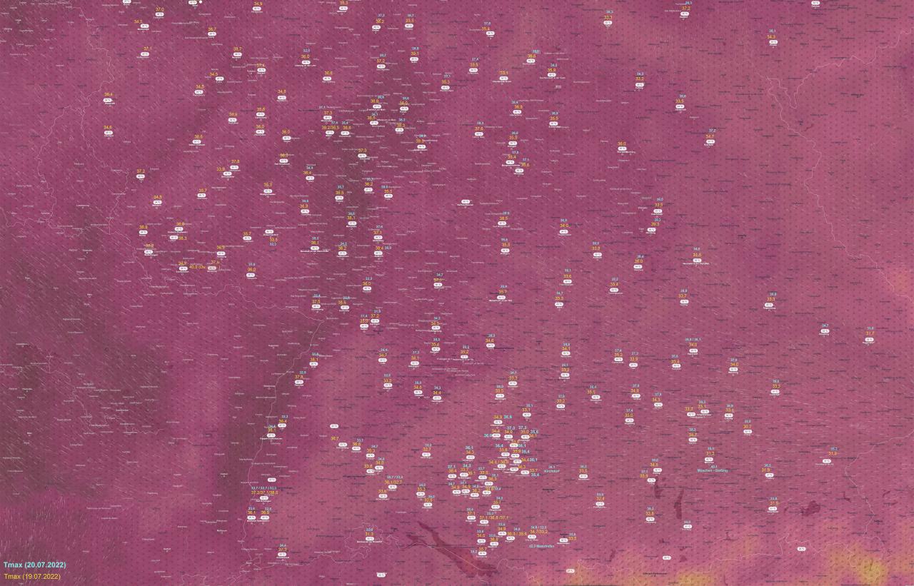 Lannion und Morlaix in der Bretagne auch 40°C, und dazu viele Feuer / Brände.