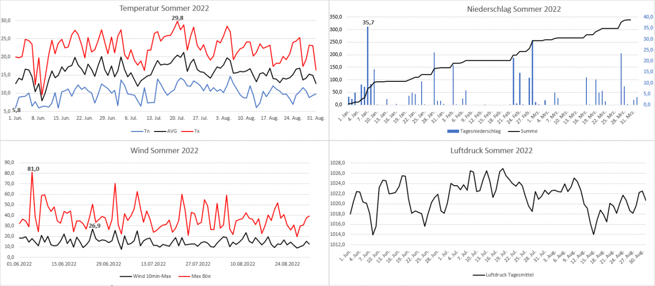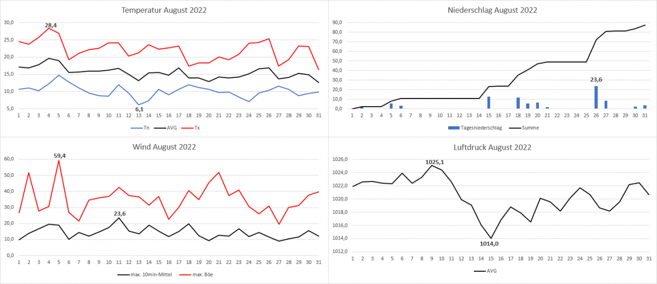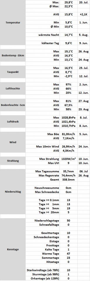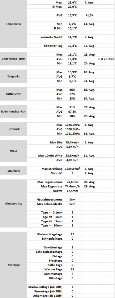 Wetterstatistik Kematen im Pfitschertal August 2022 + Sommerauswertung 2022