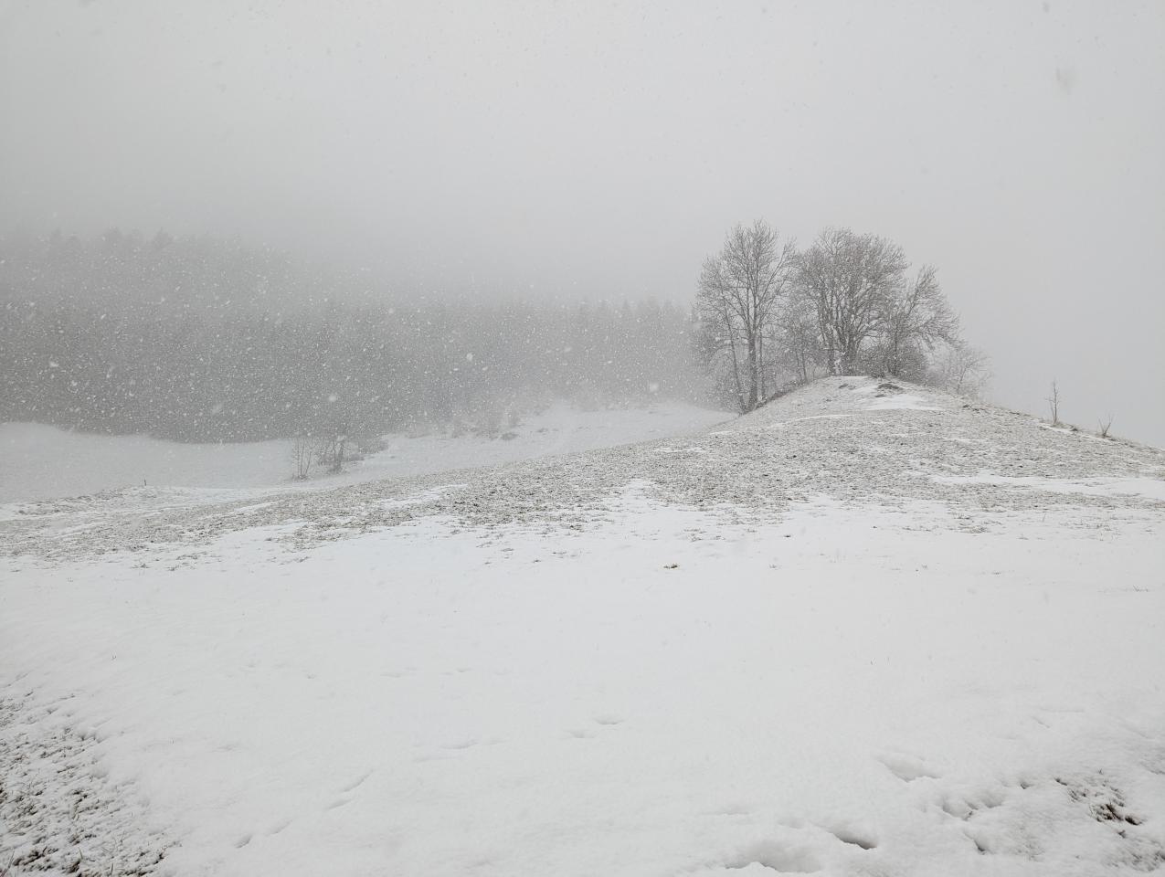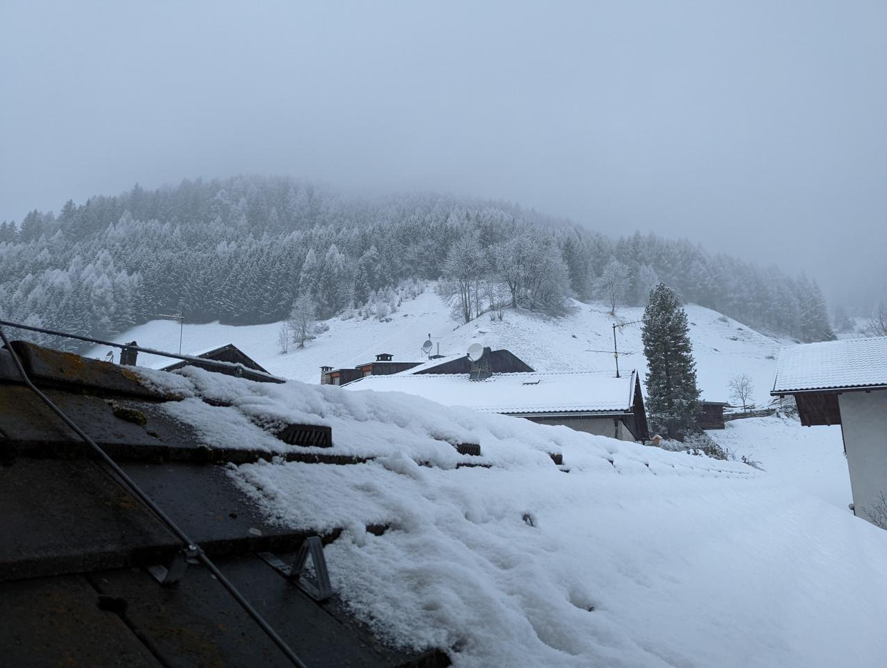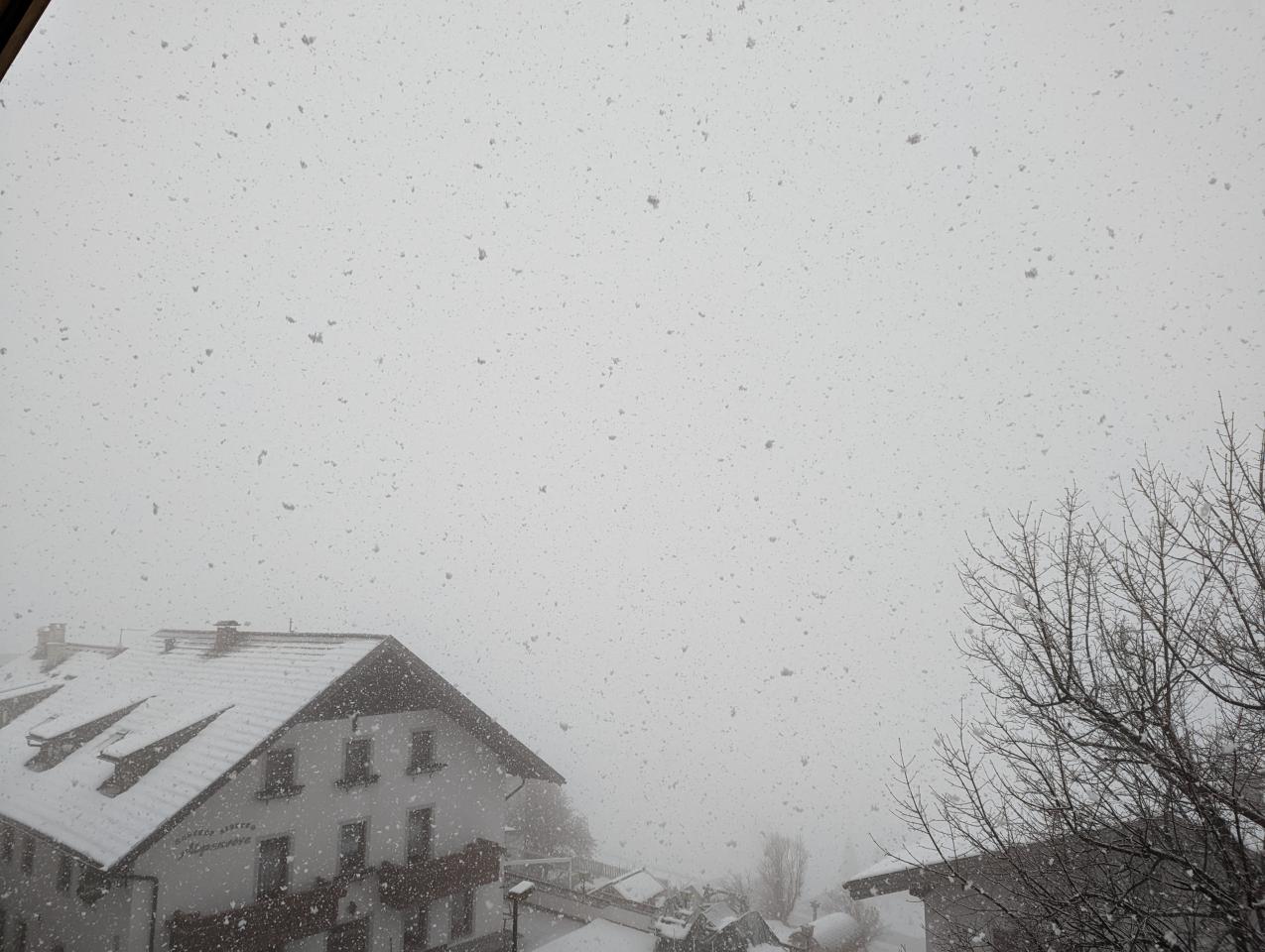 Takt 0,0°C, mäßiger Schneefall. Neuschnee ca. 2-3cm. Durch mildere Mittelmeerluft schneit es nur bis in die höchsten Täler. Aber die milde Luft hat in den nächsten Tage nicht mehr viel zu melden.