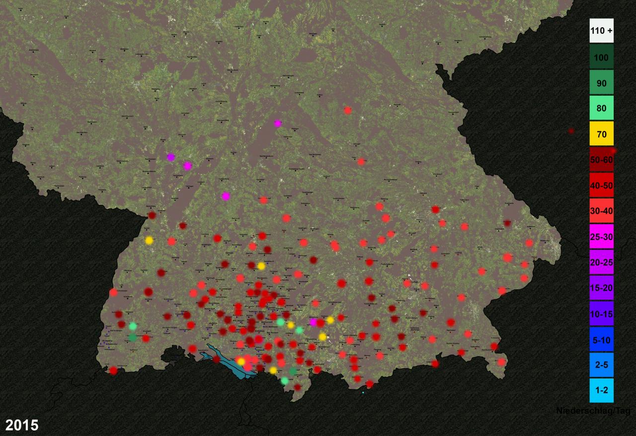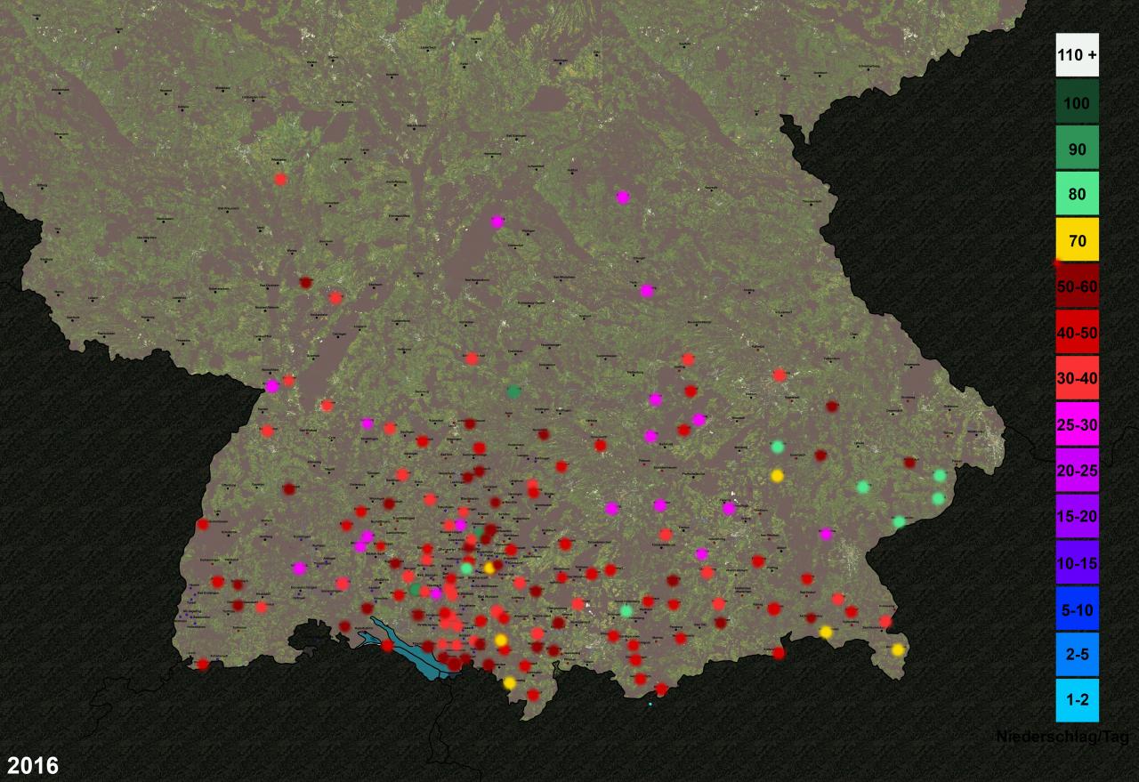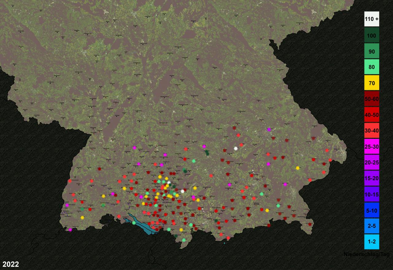 Wie aktuell nun bekannt ist, nehmen Wetterextreme wie Temperatur und Niederschläge zu. 2022 hatte es hier im Ländle Niederschläge gegeben von 70 bis über 100 mm an einem Tag. Die aktuellen Niederschläge nehmen jedes Jahr zu, besonders die von 30 bis 60 mm. Was zu beobachten ist, dass sich immer häufiger Niederschläge mit 70 bis 80 mm an einen Tag zunehmen. Diese Jahr ist mal noch nicht berechnet worden.