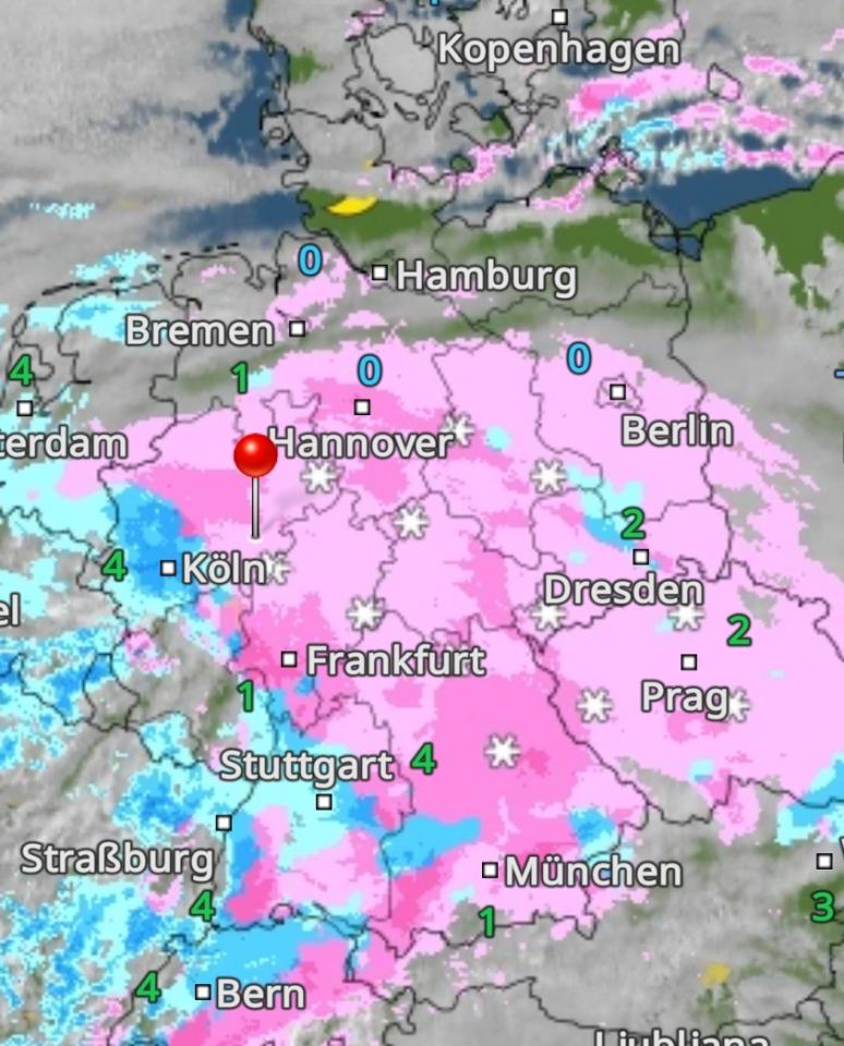 Hier Takt 3,5 Grad Regen. Regen hier bis über 800m heute Nacht.