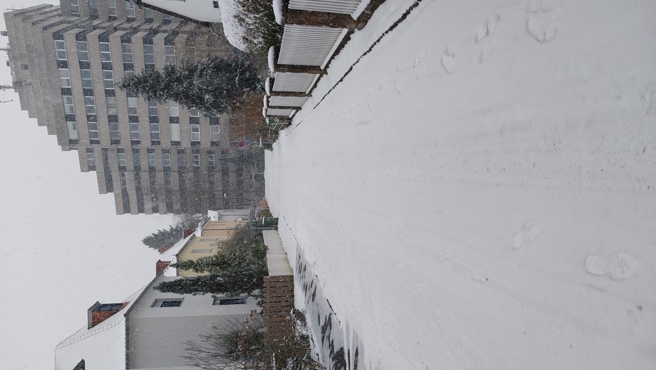 Sowas ist super ungewöhnlich hier, wenn es sonst schon mal schneit, dann nicht so viel in kurzer Zeit und es wird schnell matschig.