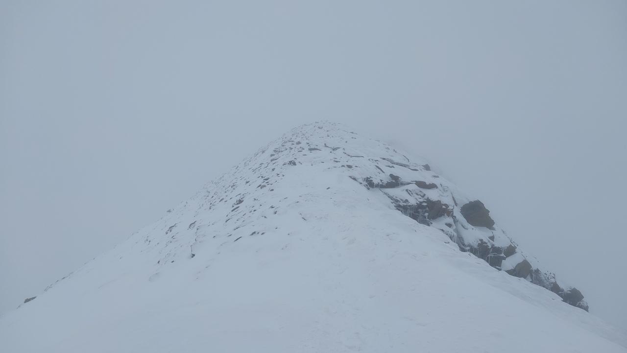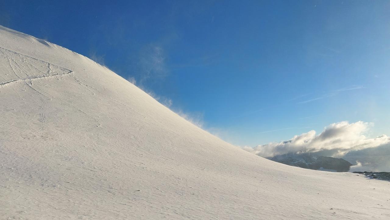 Viel Nebel, Wind und immer wieder (etwas) Neuschnee, teils bis etwa 2.600m herunter. Mit der Neuschneeauflage bildeten sich tolle Kontraste heraus: Leuchtendes Weiß vs. rot-braun gefärbeter Altschnee (Saharastaub).