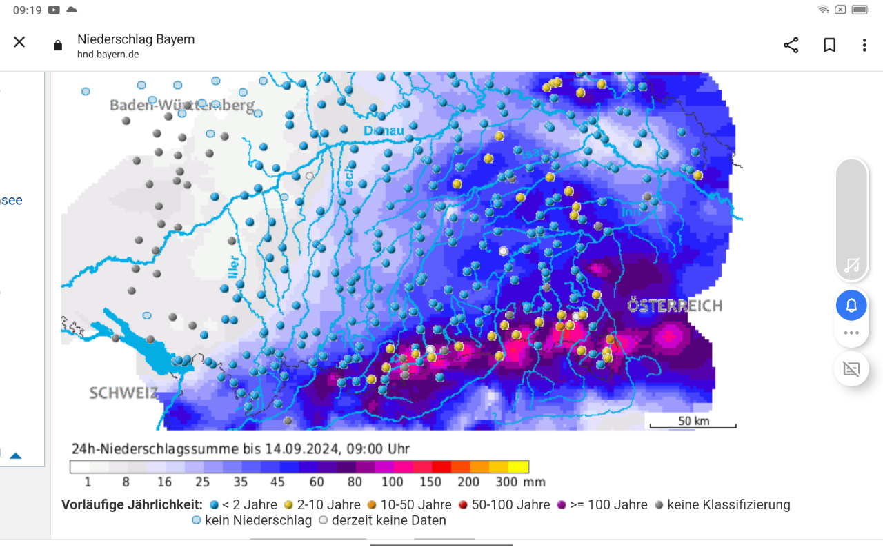 Heute sieht das sehr schlimm aus, in Bayern. Mal sehen, was da an Regenmengen bis 23:50 gefallen sind.