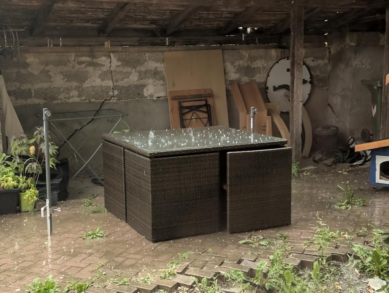 Dann kam kleiner Hagel und Starkregen, glücklicherweise hat sich der Hagel abgeschwächt, er war wohl nur 10min vorher um die 4cm groß jetzt nur noch um 2cm: