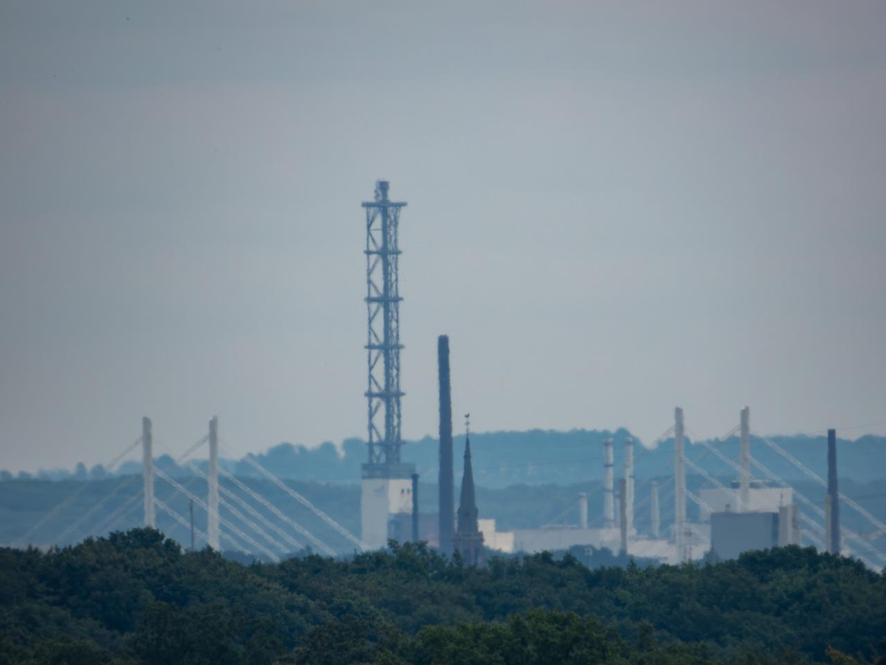 Etwas weiter südlich sieht man die Schornsteine vom Chempark Krefeld-Uerdingen (18km):