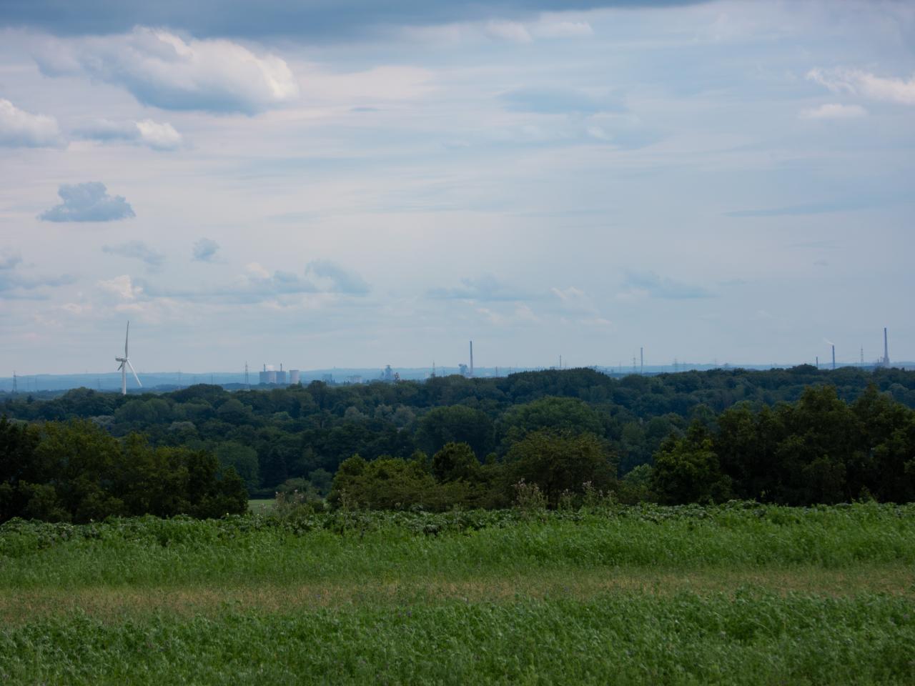 Als ich letztens in der Heimat war fuhr ich mit dem Rad auf den 15km entfernten Oermter Berg (Grenze Kreis Kleve und Wesel nahe Rheurdt). Durch die sehr flache Landschaft reichte die geringe Höhe von 80m üNN bzw. rund 50m über das Umgebungsniveau aus um einen sehr guten Blick ins Ruhrgebiet zu geben. Und das trotz dem eher feucht warmen Wetter, da wäre bei einer trockenen Luftmasse sogar, was die Qualität der Sicht angeht, noch was rauszuholen gewesen.