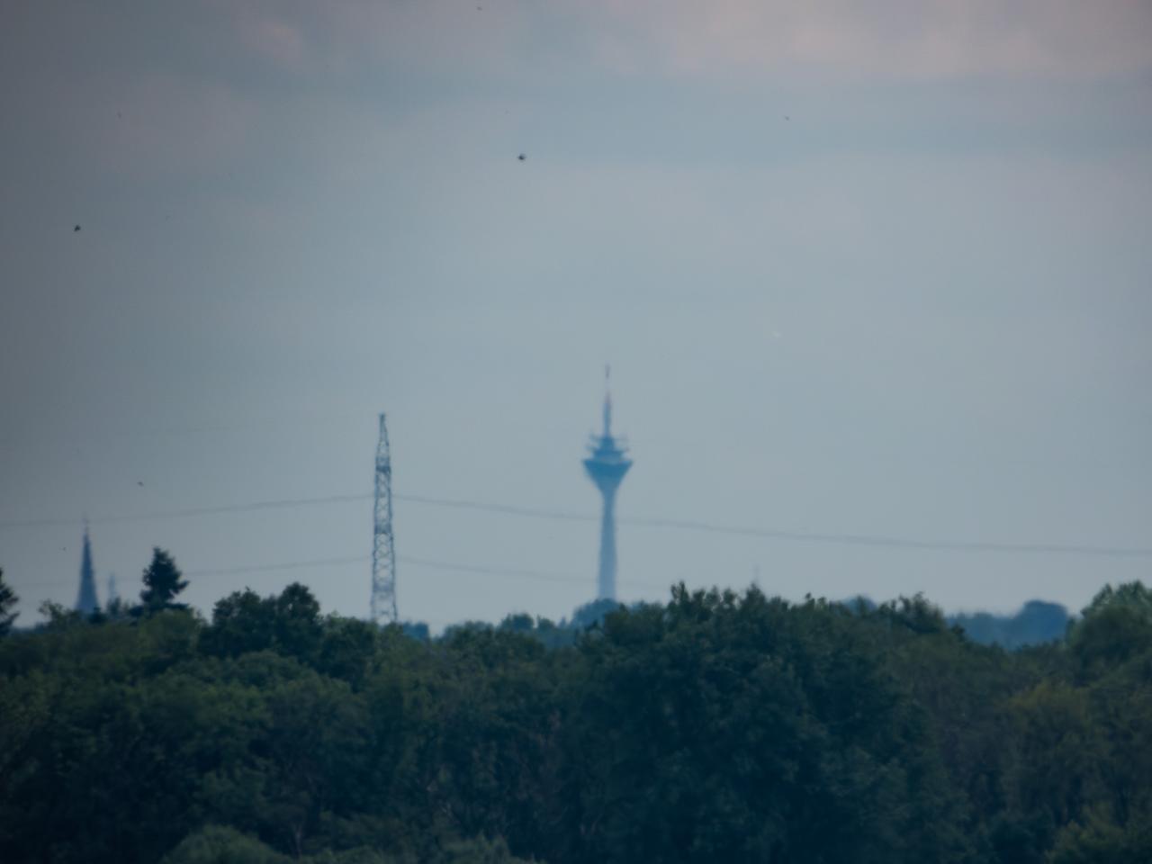 In der linken Mitte ist ganz am Horizont noch ein Fernmeldeturm zu sehen, ich habe mal nachgeschaut und es anscheinend der Fernmeldeturm in Witzhelden, das liegt schon im Bergischen! Das sind 60km Entfernung, hier eine vergrößerter Ausschnitt: