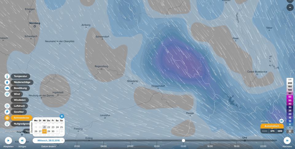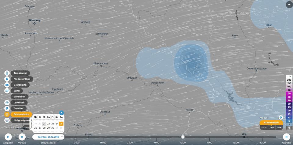 Hatte dieses Modell für den Sonntag bei uns im Bayerischen Wald 1 bis 5 cm Neuschnee drinn?