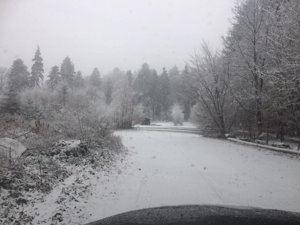 Im Mittelschwarzwald lässt das Geflocke langsam nach, für 3 cm hat's gereicht ;-) Ca. 10 km Luftlinie östlich auf vergleichbarer Höhe scheint es weniger zu sein.