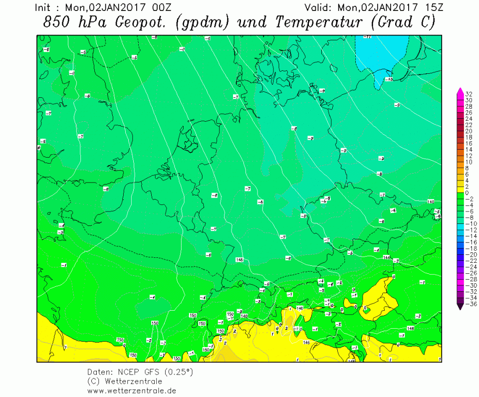 Grad auf 850hpa noch für Schnee bis ganz unten reichen: