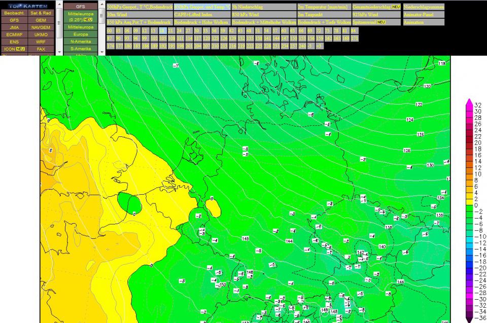 1. Ich geh auf den Link und wähl links oben unter Topkarten "GFS" aus und daneben als Detailauswahl "Mitteleuropa"!